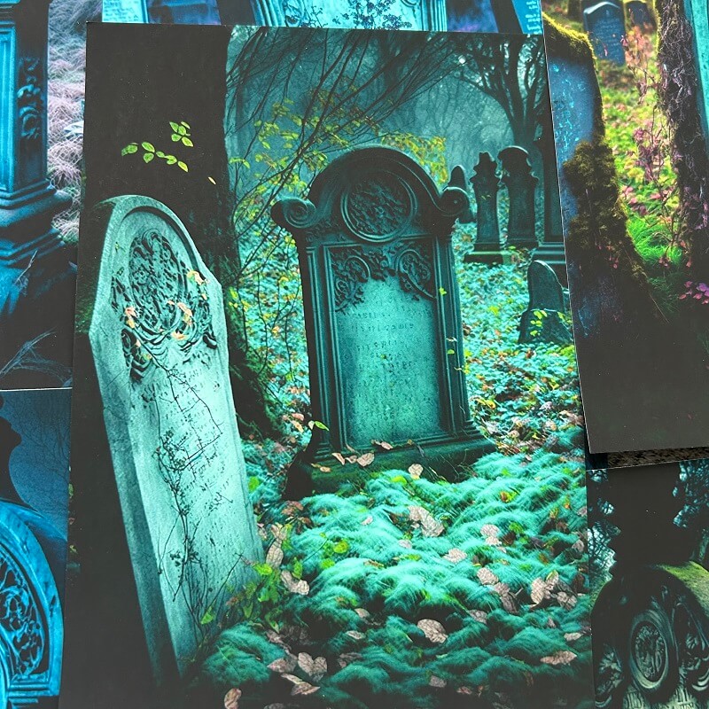 Ghost Graveyard Material Paper is for writing, recording, free cutting, and also for decorating scrapbooks, art journals, cards, gift bags and DIY other paper crafts. Make unique handmade items to add a mysterious charm to your creations, unleash your imagination to make this material paper part of your unique story.