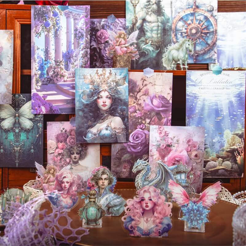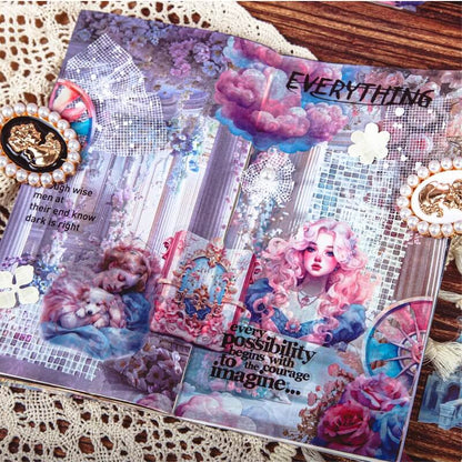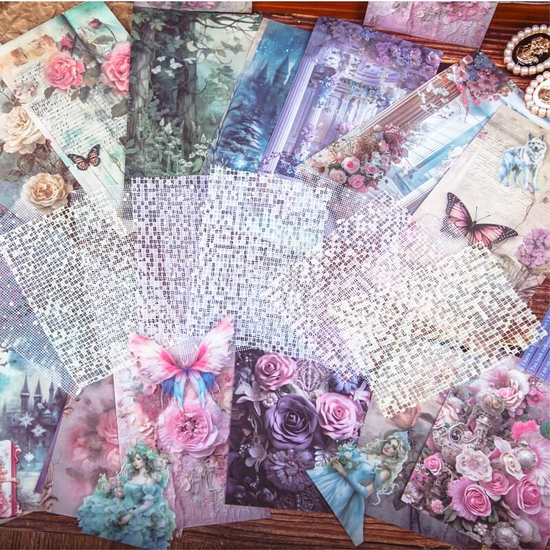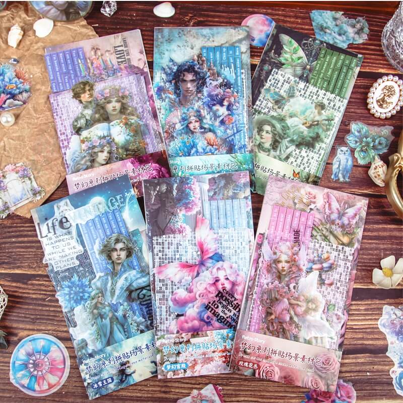 Fantasy Collection Scrapbooking Pack comes with 6 different styles of materials, each with 10 sheets of material paper, 2 sheets of grid paper, and 15 stickers for decorating scrapbooks, art journals, cards, gift bags, and DIY other paper crafts. Make unique crafts, add mysterious charm to your creations, unleash your imagination and make these papers part of your unique story.