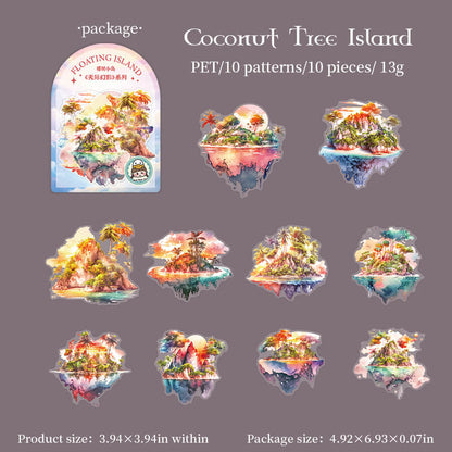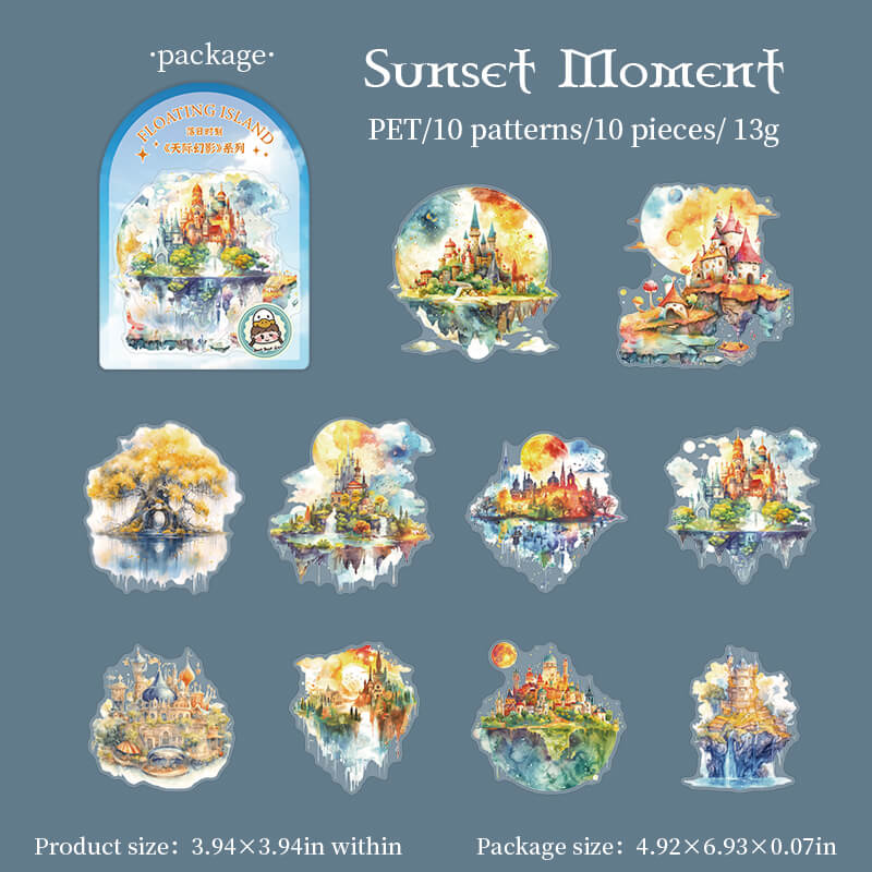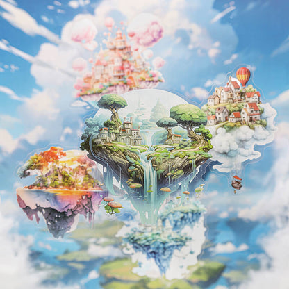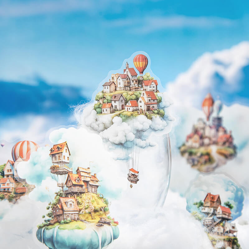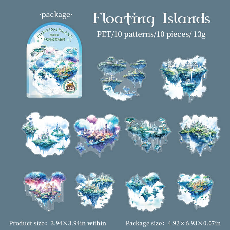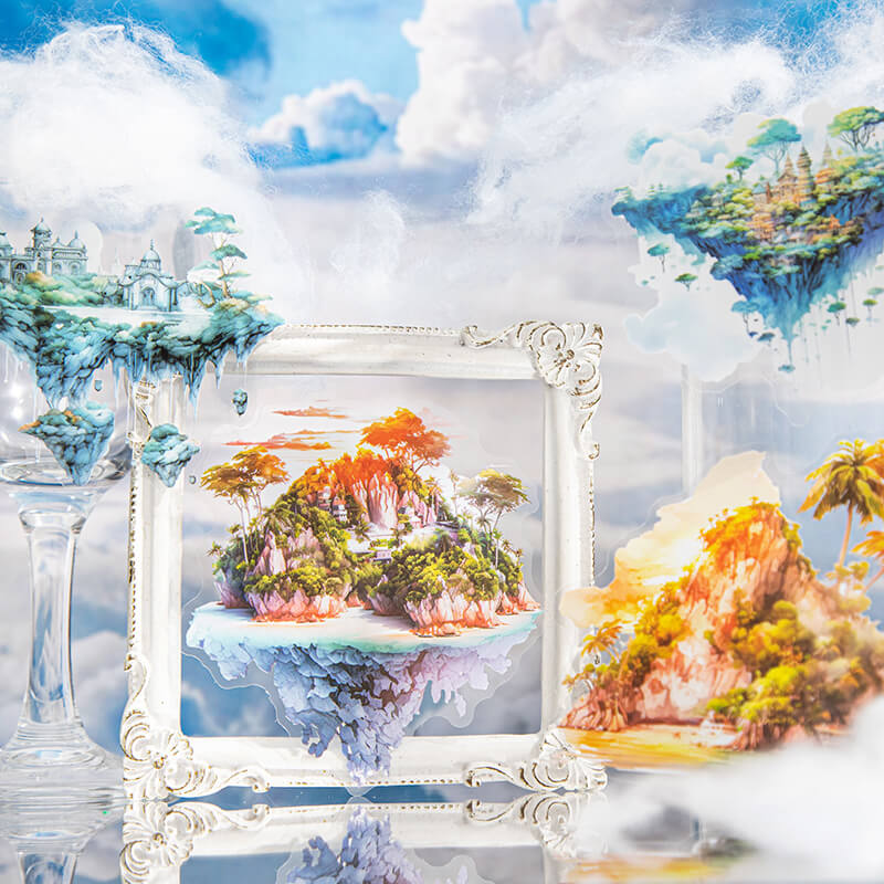 Floating island themed stickers are used to decorate scrapbooks, art journals, cards, planners and other paper crafts, they can also be used to decorate computers, cell phones, they can add a unique style and personality to the item, it is the item more attractive and personalized, add color to life!