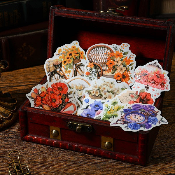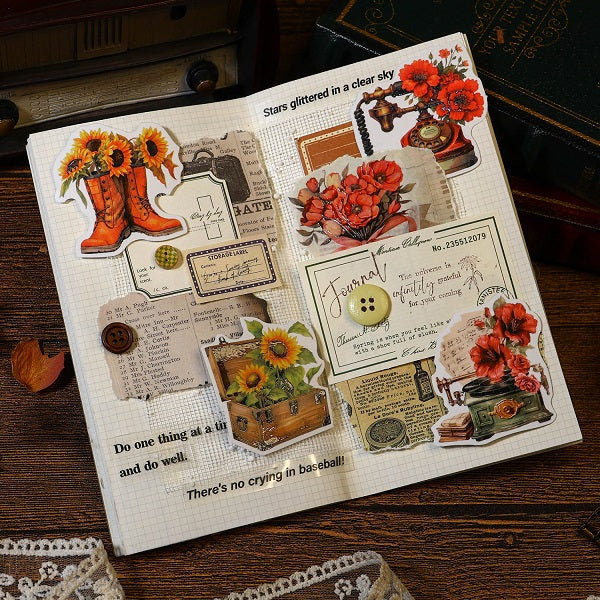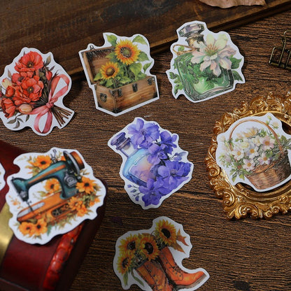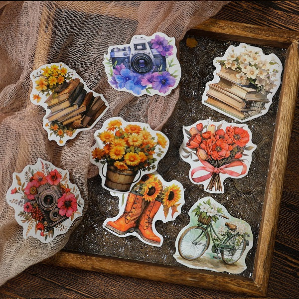 This weekend florist series stickers have 4 themes, bright colors and rich patterns, you can stick it on the luggage and other locations, you can also stack other material paper, stickers to make a scrapbook, journal, junk journal, play your creativity, DIY belong to your work.