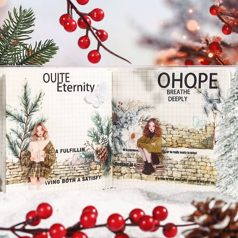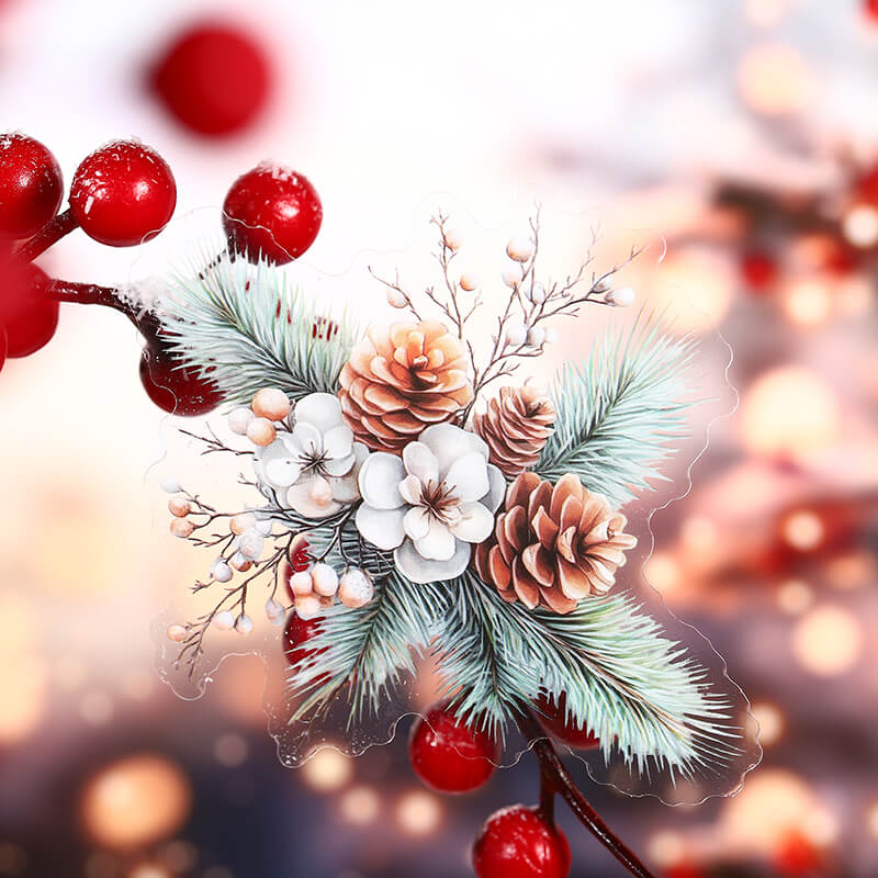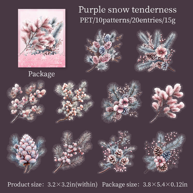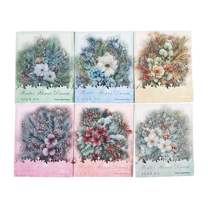 Winter Flower Branch Stickers, inspired by the natural scenery of the cold season, incorporate snowflakes, frost and winter floral elements. The delicate flower branch pattern with light snowflakes creates a serene and cozy winter atmosphere. Suitable for decorating handbooks, greeting cards or other creative works, adding a touch of vividness and poetry to the winter season