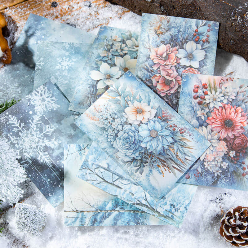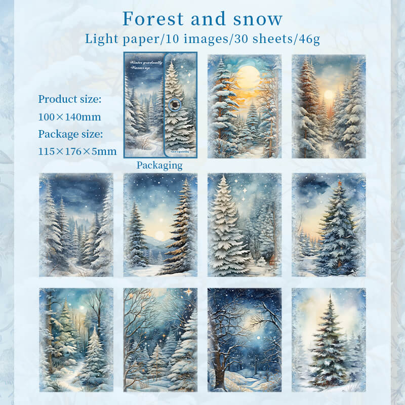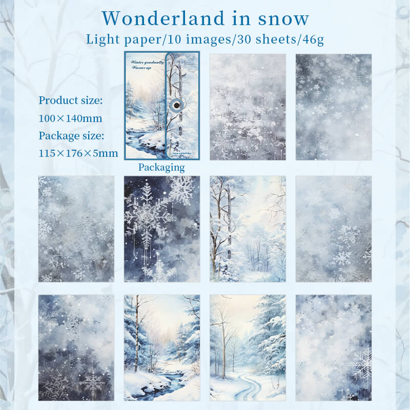 Winter snow scene material paper is used for writing, recording, free cutting, also can be used for decorating scrapbooks, art journals, cards, gift bags and DIY other paper crafts. Feel free to use your creativity to add color to your life!