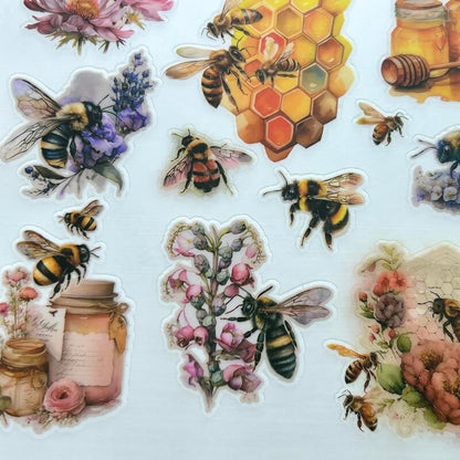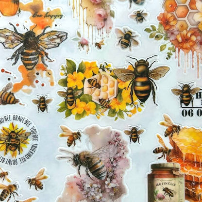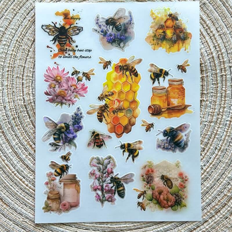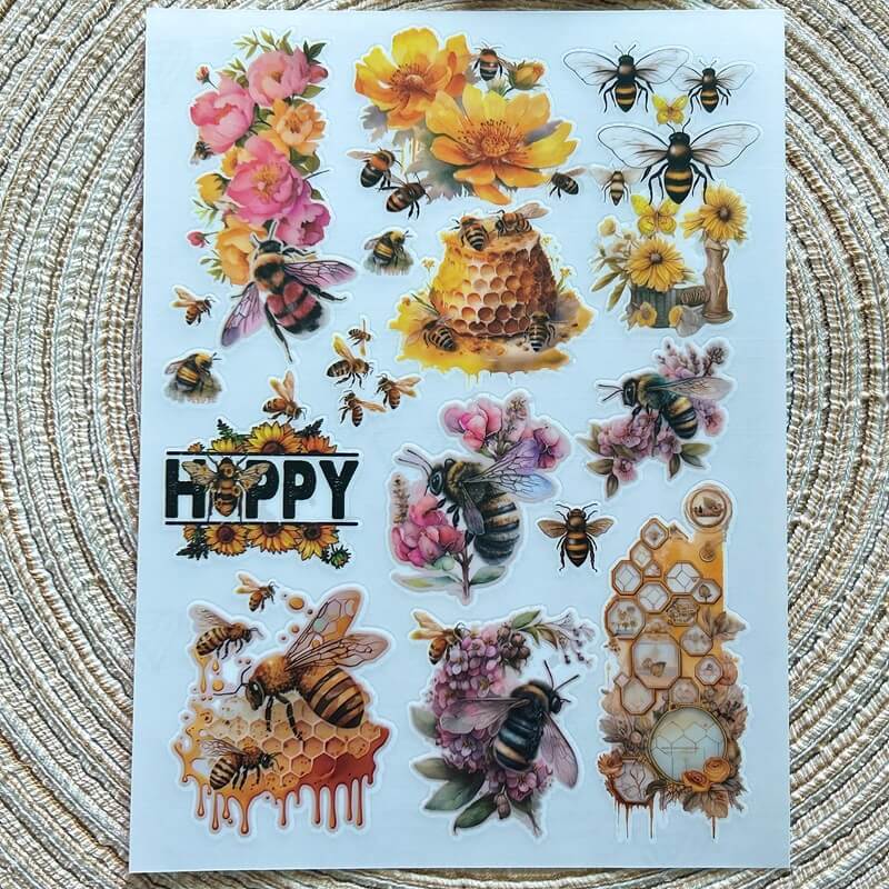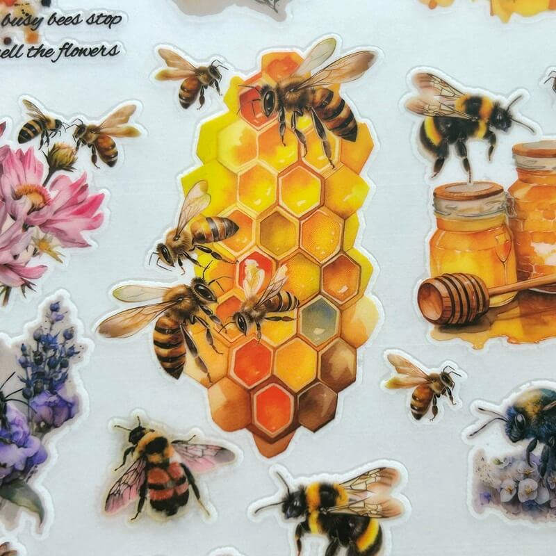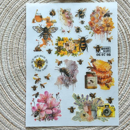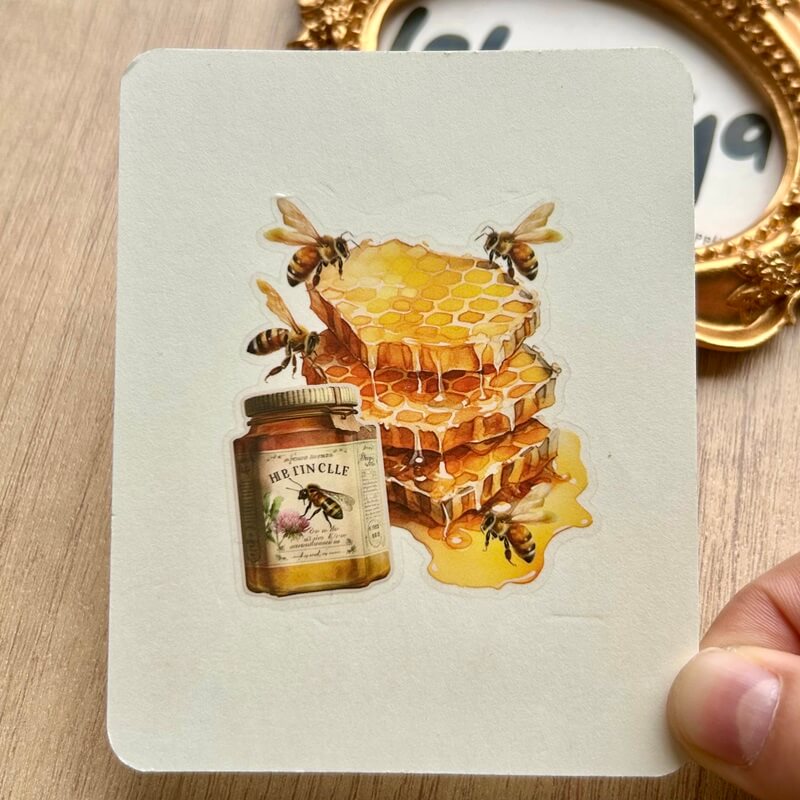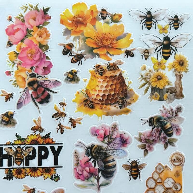 Bee rub-on stickers are like tiny works of art that exude freshness and playfulness. Each bee comes to life with its wings slightly spread as if ready to fly. The honey pot is tantalizingly sweet, and the golden honey seems to be on the verge of overflowing. The colors are soft but vibrant, and the combination of gold and black is reminiscent of a sunny spring day and a flowery garden. The stickers are made of delicate material and feel great, decorating everyday items and adding a touch of sweetness and vibrancy to handwritten notes and cards.