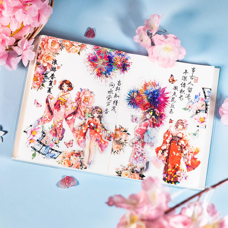Cherry Blossom Girl Stickers are used to decorate scrapbooks, art journals, cards, planners and other paper crafts, they can also be used to decorate computers, cell phones, they can add a unique style and personality to the items, which make the items more attractive and personalized, and colorful for life!