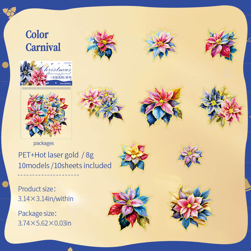 Christmas Flower Period Stickers are used to decorate scrapbooks, art journals, cards, planners and other paper crafts, can also be used to decorate computers, cell phones, they can add a unique style and personality to the items, is the items more attractive and personalized, colorful for life!
