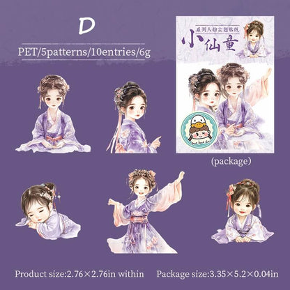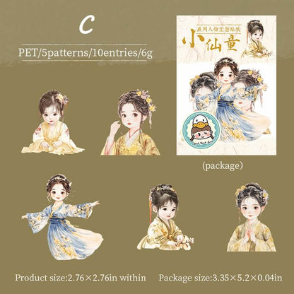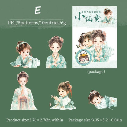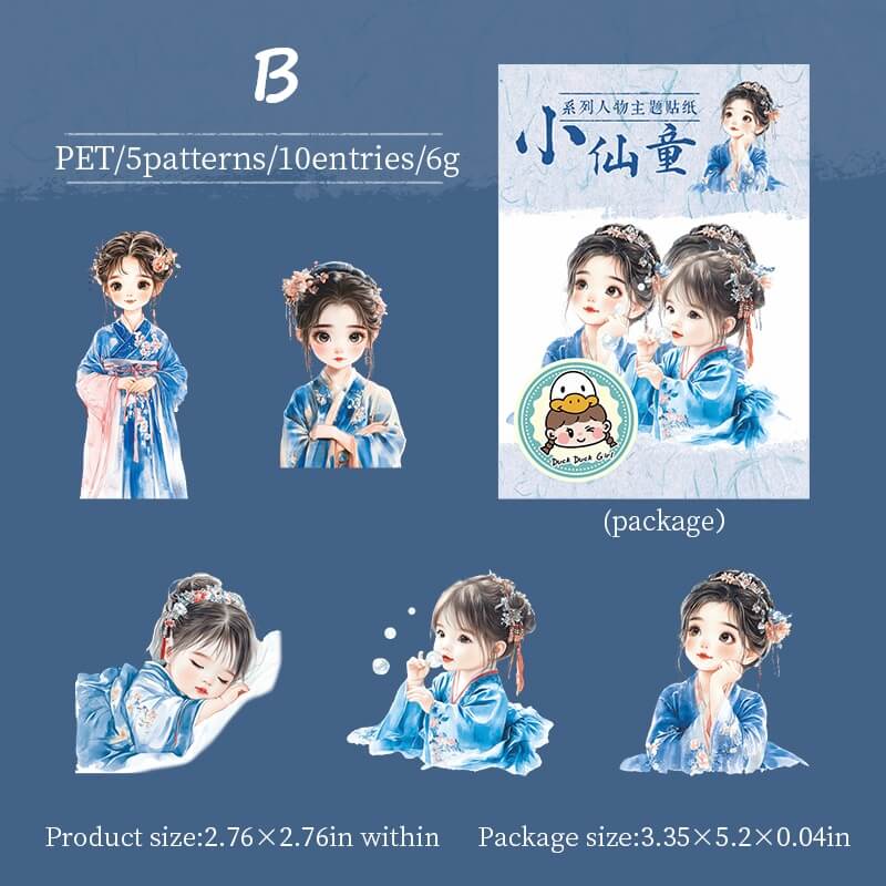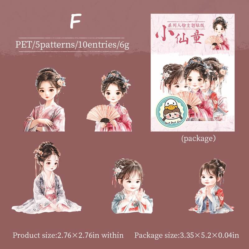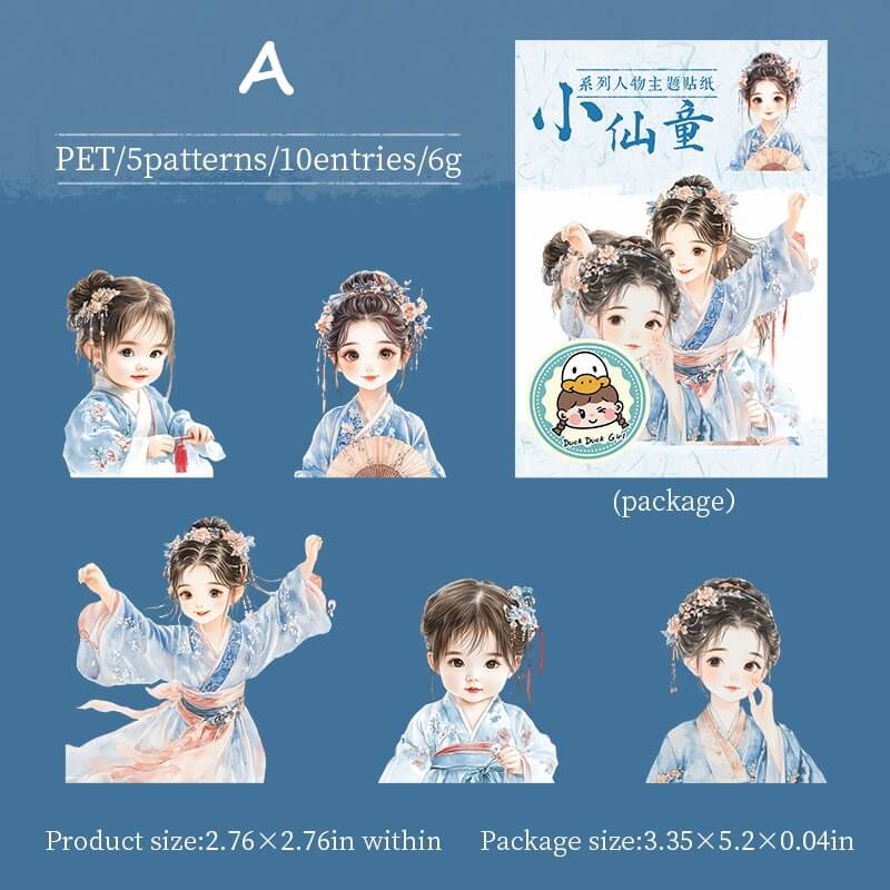 Cute little girl stickers are themed with playfulness and innocence, showing various images of little girls in sweet costumes. Each sticker exudes childish fun and warmth, suitable for embellishing handbooks, cards and diaries, bringing endless cuteness and happiness.