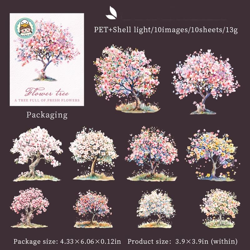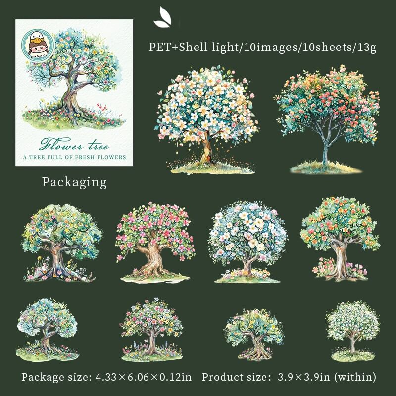Flower Tree Stickers are used to decorate scrapbooks, art journals, cards, planners and other paper crafts, they can also be used to decorate computers, cell phones, luggage and other items, they can add a unique style and personality to the items, is the items more attractive and personalized, colorful for life!