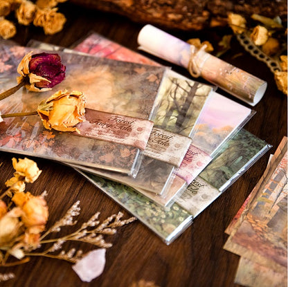 There are 4 types of this forest fairy tale paper, each with a total of 32 sheets and 8 patterns; The background paper is the most basic accessory for scrapbook album scrapbooking, it is a carrier for photos and other decorations, and it can also be used for handmade greeting cards, handbook decorations, DIY origami, packaging, framed gift boxes, exploding boxes and so on.