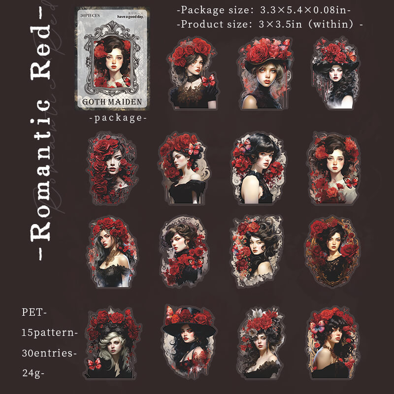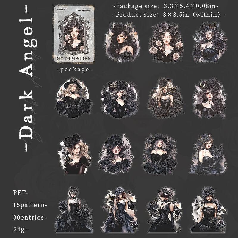 Gthic Girl Stickers can be used to decorate scrapbooks, art journals, cards, gift bags and DIY other paper crafts. Make unique handmade items to add a mysterious charm to your creations, unleash your imagination to make this material paper part of your unique story.
