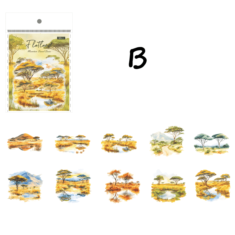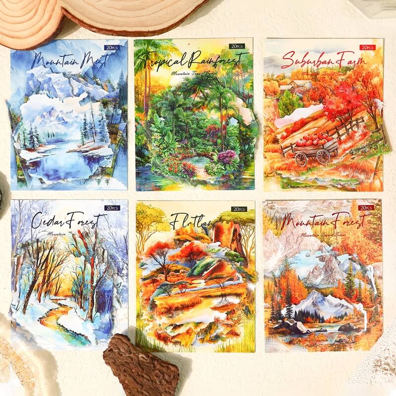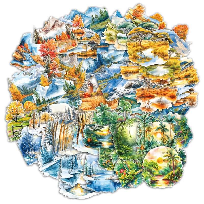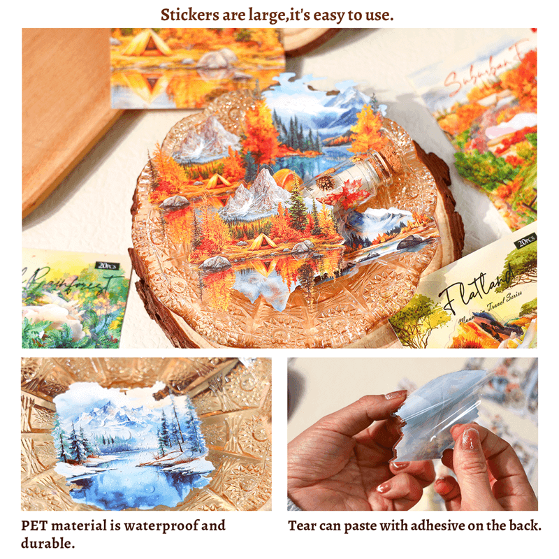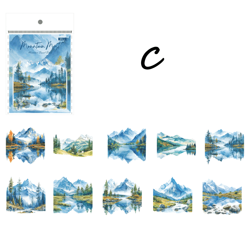 Mountain and River Scenery Stickers are used to decorate scrapbooks, art journals, cards, planners and other paper crafts, can also be used to decorate computers, cell phones, they can add a unique style and personality to the items, is the items more attractive and personalized, colorful for life!