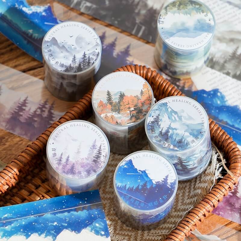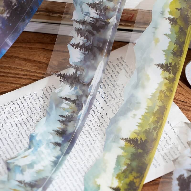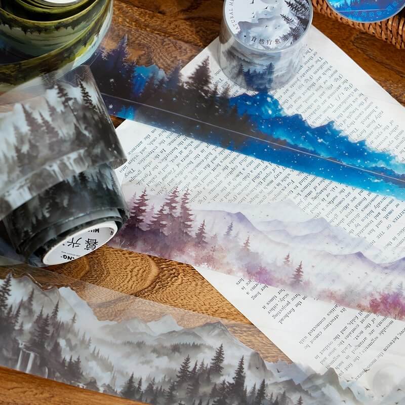 Mountain View Tape can be freely cut and stacked with other stickers and material papers to make the layers more rich. Not only for handbook collage, but also can be used for album making, gift wrapping and other DIY decorations, add some unique decorations to the work, make it more beautiful!