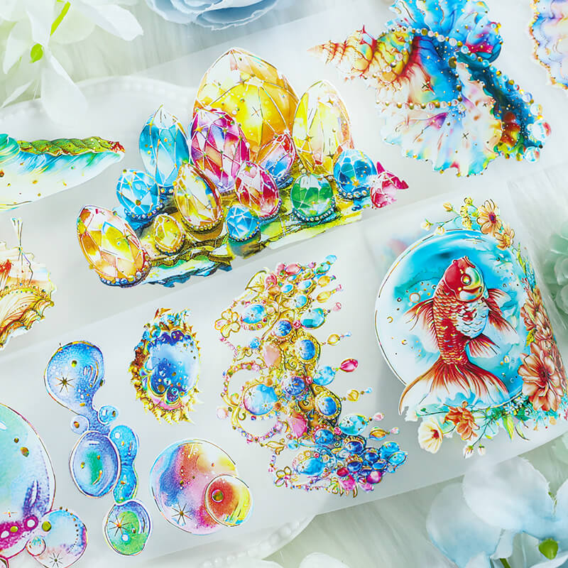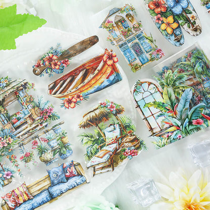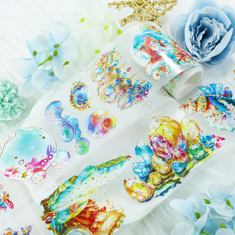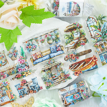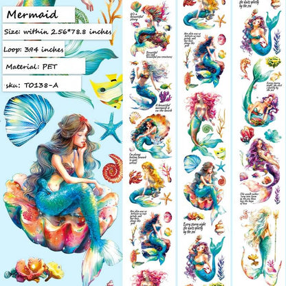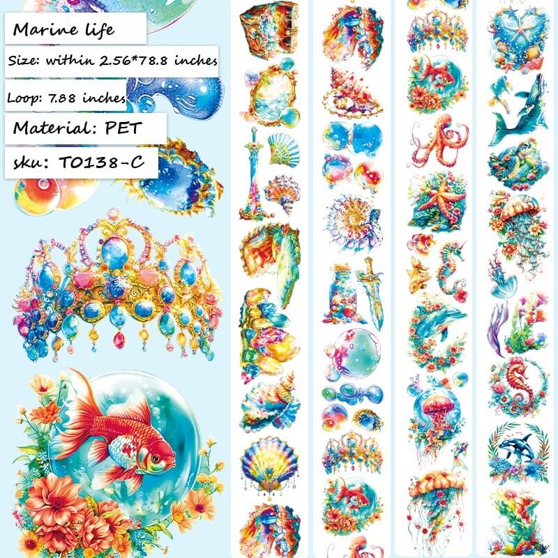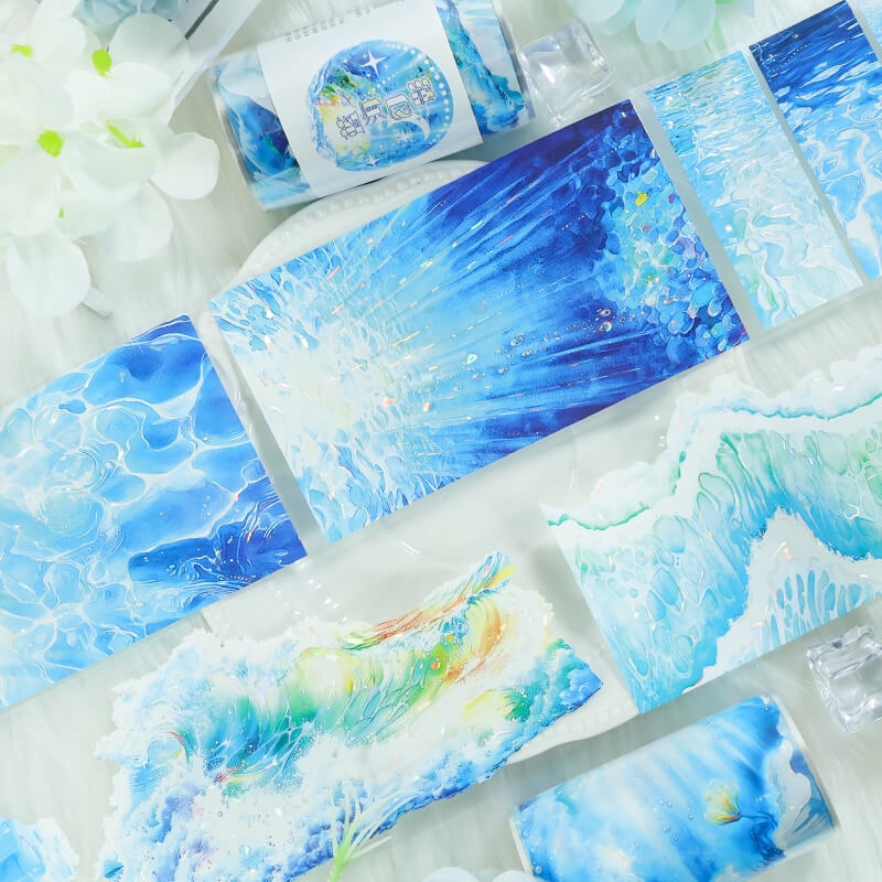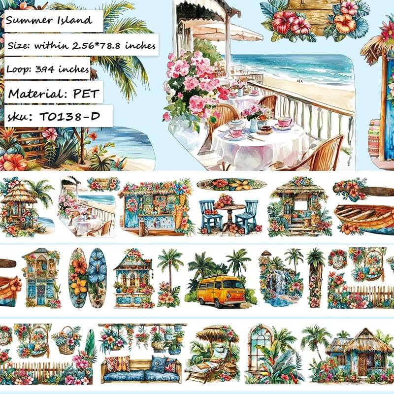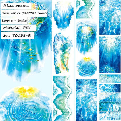 Ocean and island tape, from the natural beauty of the sea and islands, the tape pattern beautifully presents the azure sea water, marine life island girl and other elements, rich in fresh and natural atmosphere. Suitable for handbook, card production, travel records, etc., bringing a strong vacation style and relaxed atmosphere.