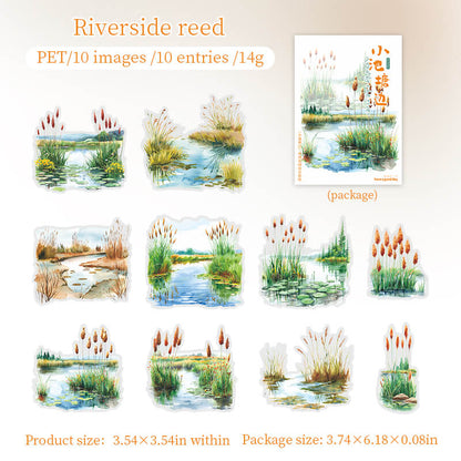 Riverside Scenery Stickers are used to decorate scrapbooks, art journals, cards, planners and other paper crafts, they can also be used to decorate computers, cell phones, they can add a unique style and personality to the items, which are more attractive and personalized, adding color to life!
