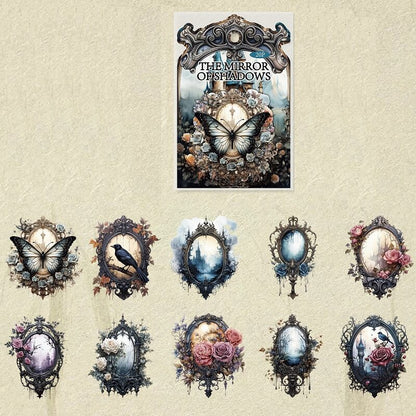 Shadow Series Stickers are used to decorate scrapbooks, art journals, cards, gift bags and DIY other paper crafts. Make unique handmade items, add a mysterious charm to your creations, release your imagination to make this material paper part of your unique story.