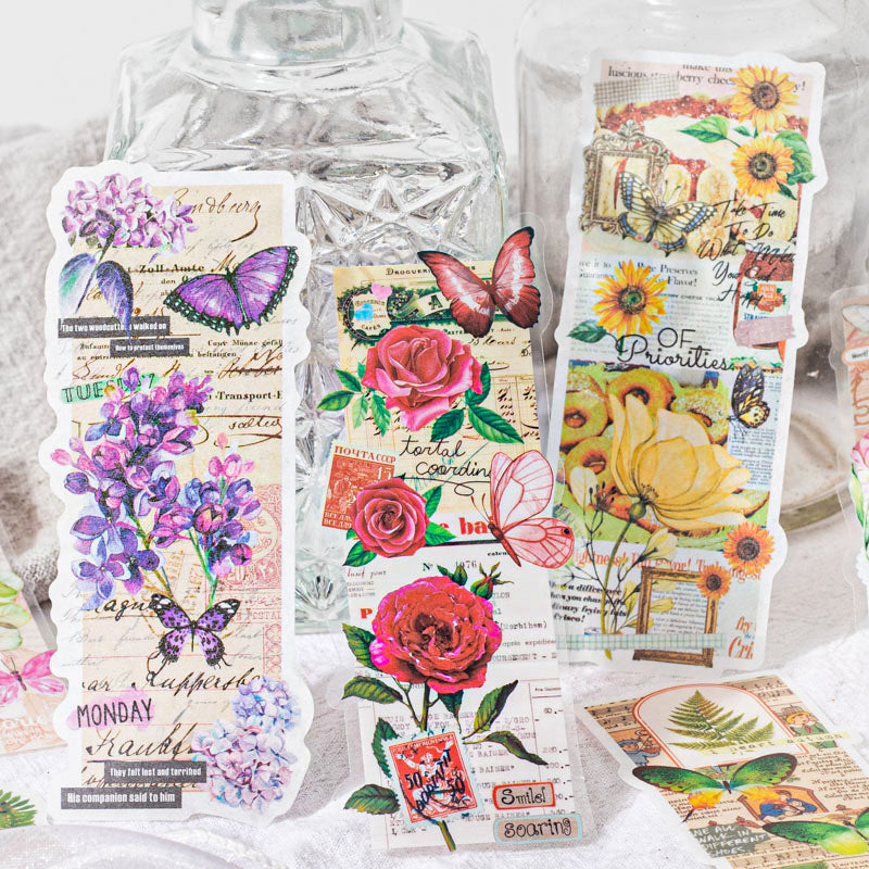 These vintage stickers are designed to decorate scrapbook, art journal, card, gift package and other paper crafts.
