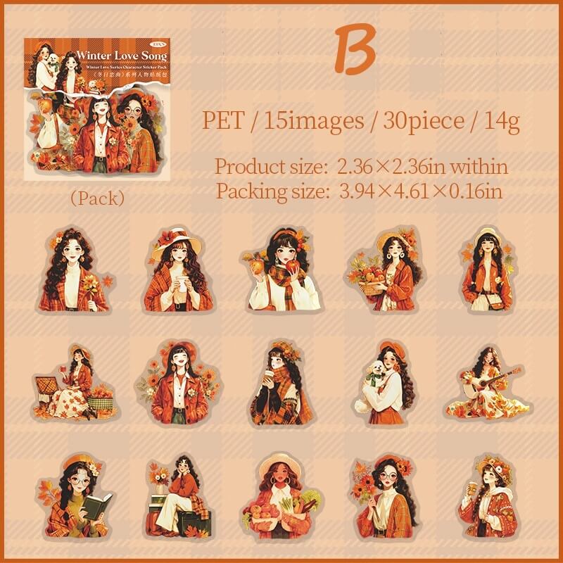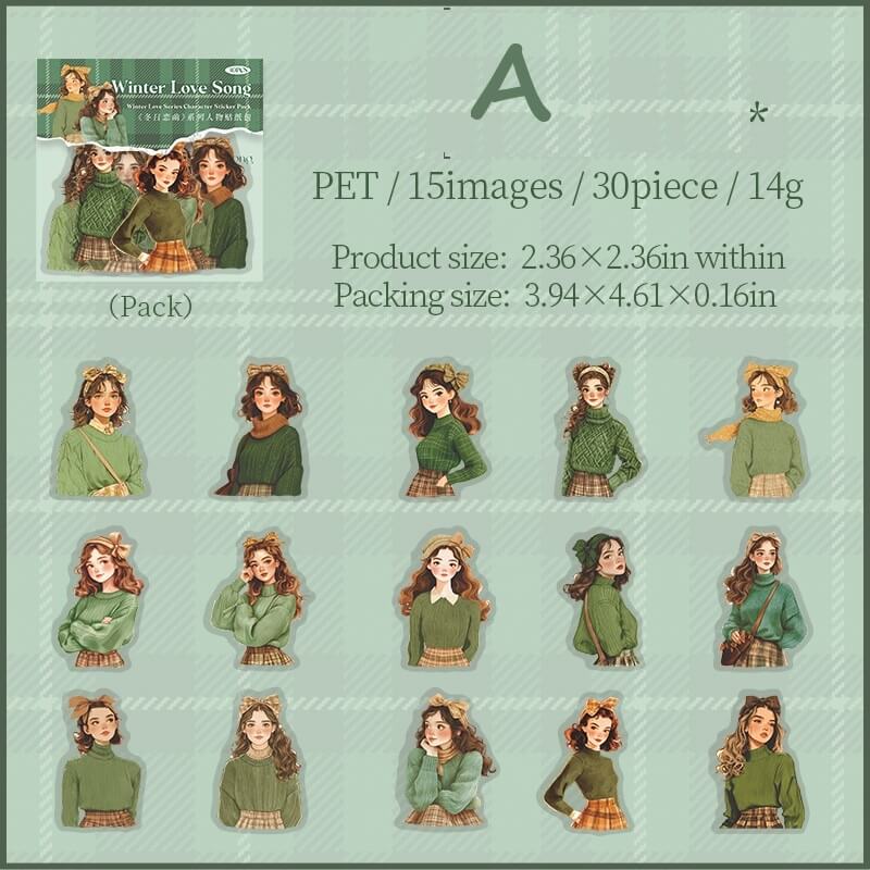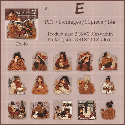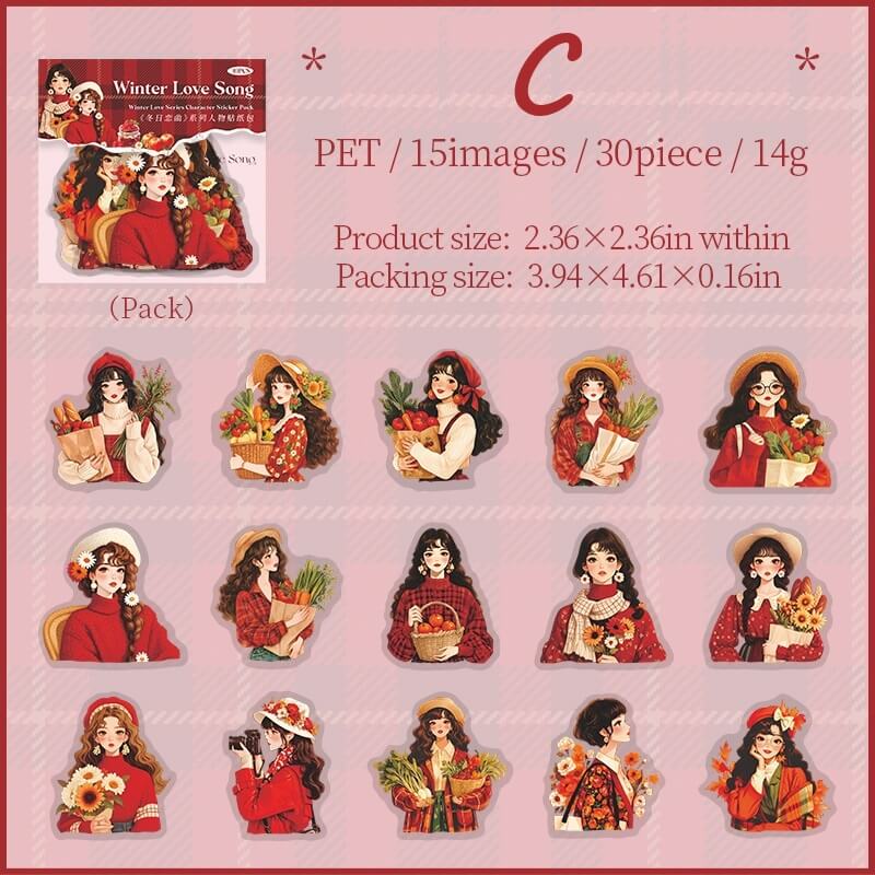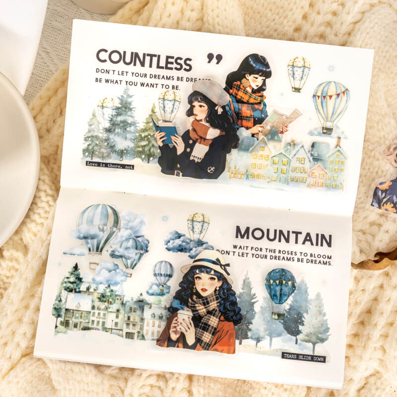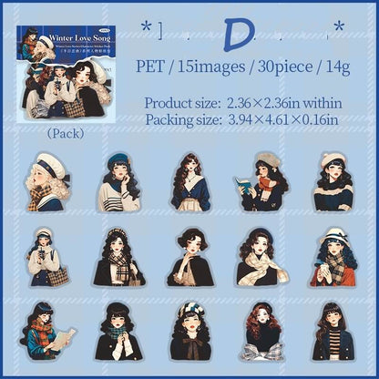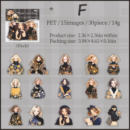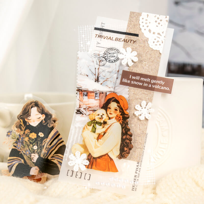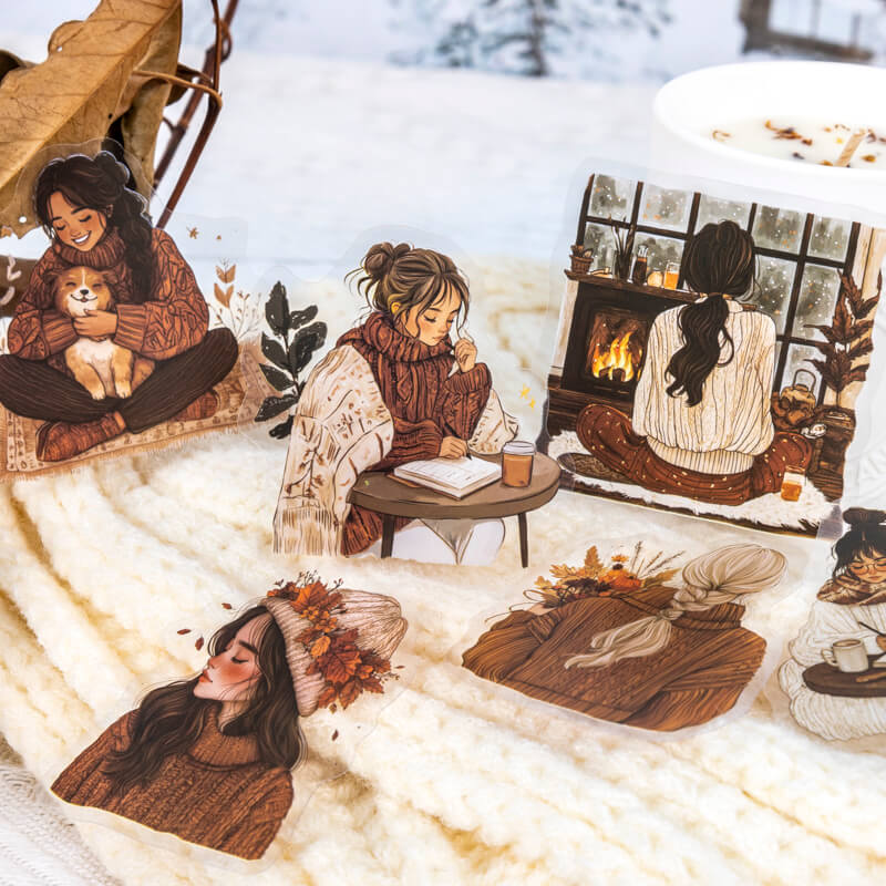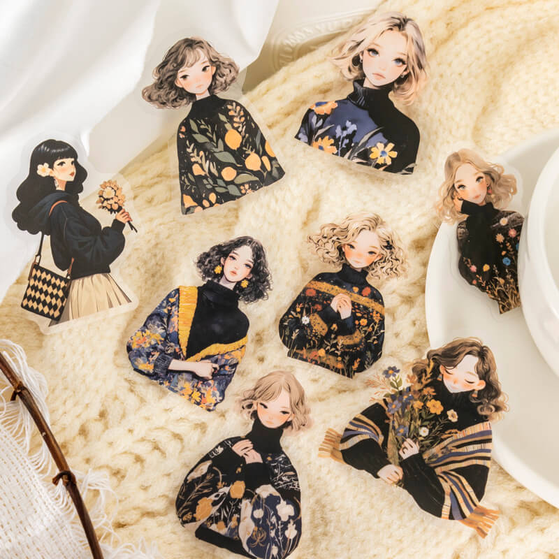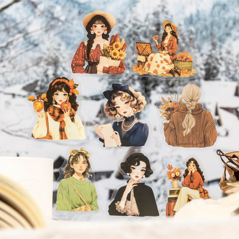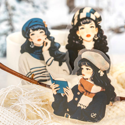 Winter Lady stickers show the warm and elegant winter atmosphere, suitable for decorating handbook, greeting card and other works, add the romantic mood of winter.