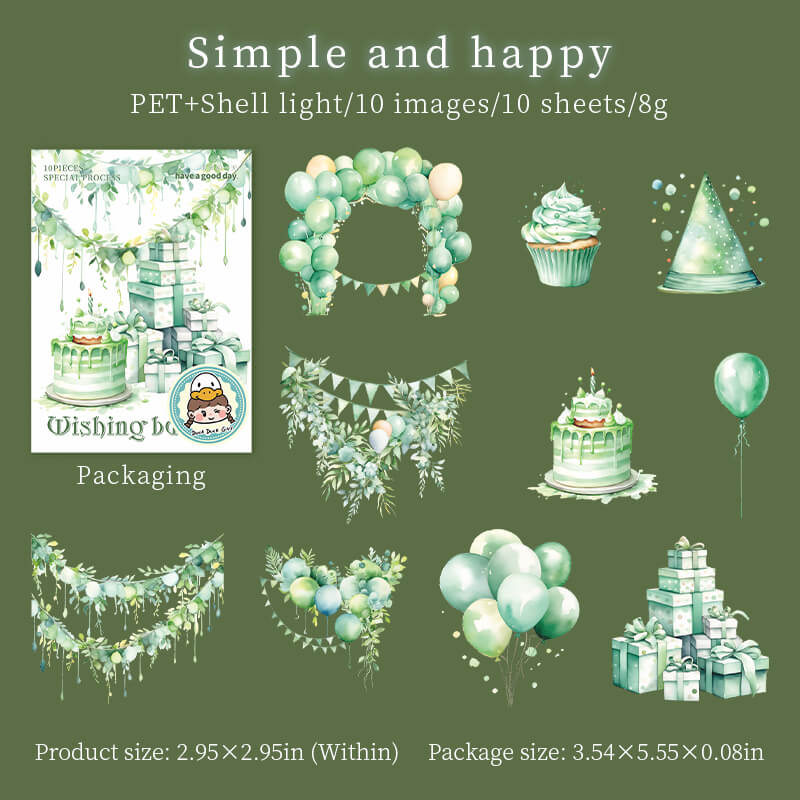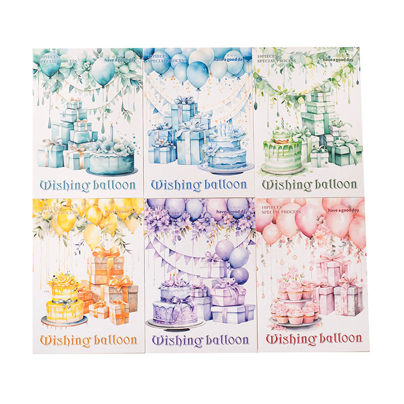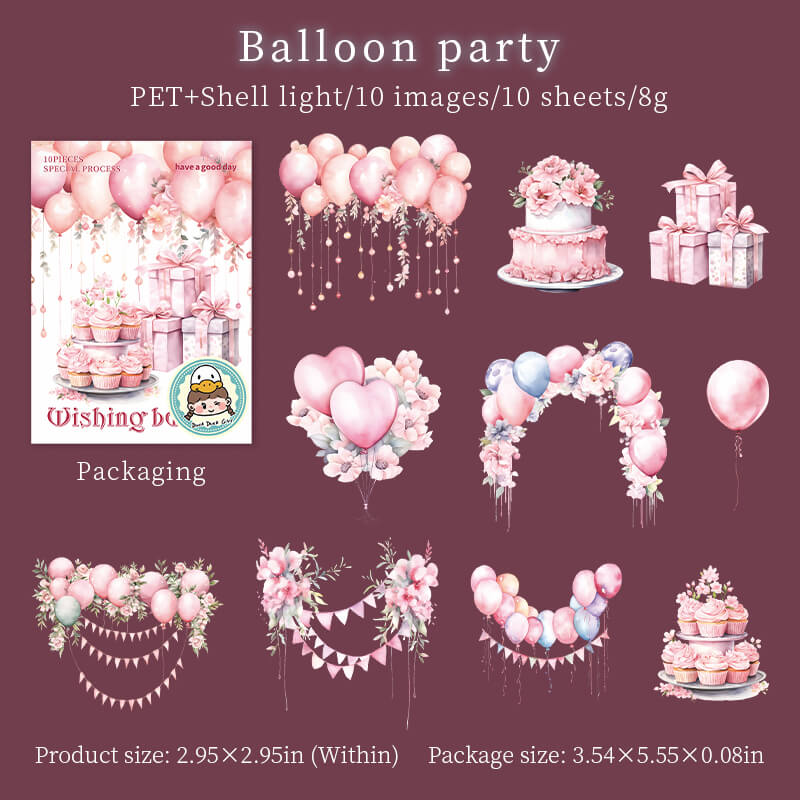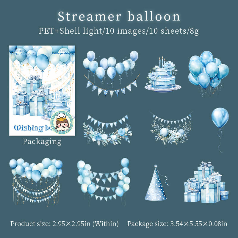 Wishing balloon stickers are full of children's fun and fantasy, depicting colorful balloons rising lightly into the air to symbolize the fulfillment of dreams and wishes. The stickers are suitable for decorating handbooks, letters or greeting cards, adding a warmth and hope to the work, bringing a relaxed and happy mood.