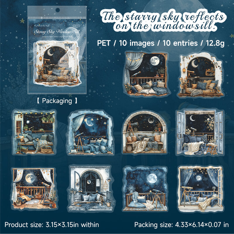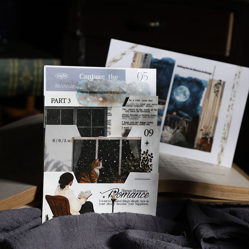 Wonderful Night Stickers are night themed with soft colors with a mysterious and romantic atmosphere. Each sticker seems to take you into a fantasy night world, suitable for decorating handbooks, envelopes or any creative works, adding a touch of dreamy color.