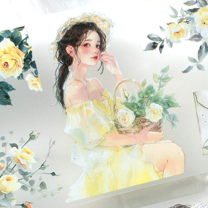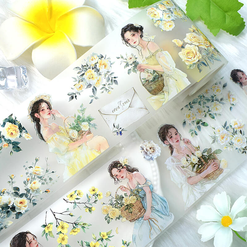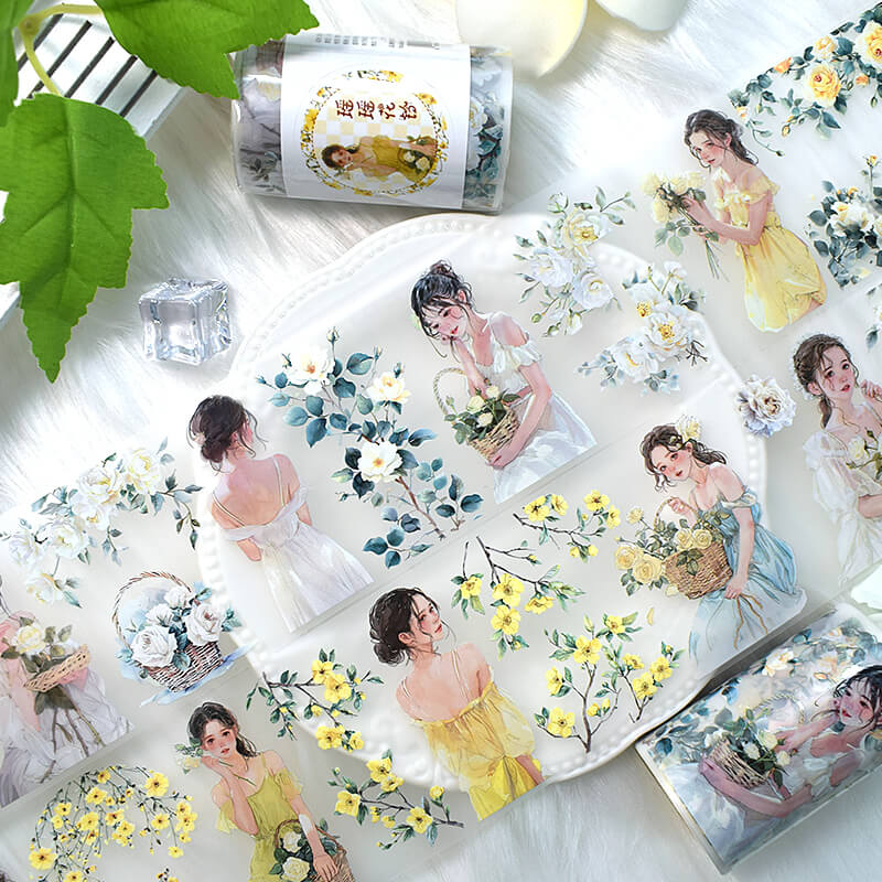 Yellow Flower Girl Tape can be freely cut and stacked with other stickers and material papers to make the layers more rich. Not only for handbook collage, but also can be used for album making, gift wrapping and other DIY decorations, add some unique decorations to the work and make it more beautiful