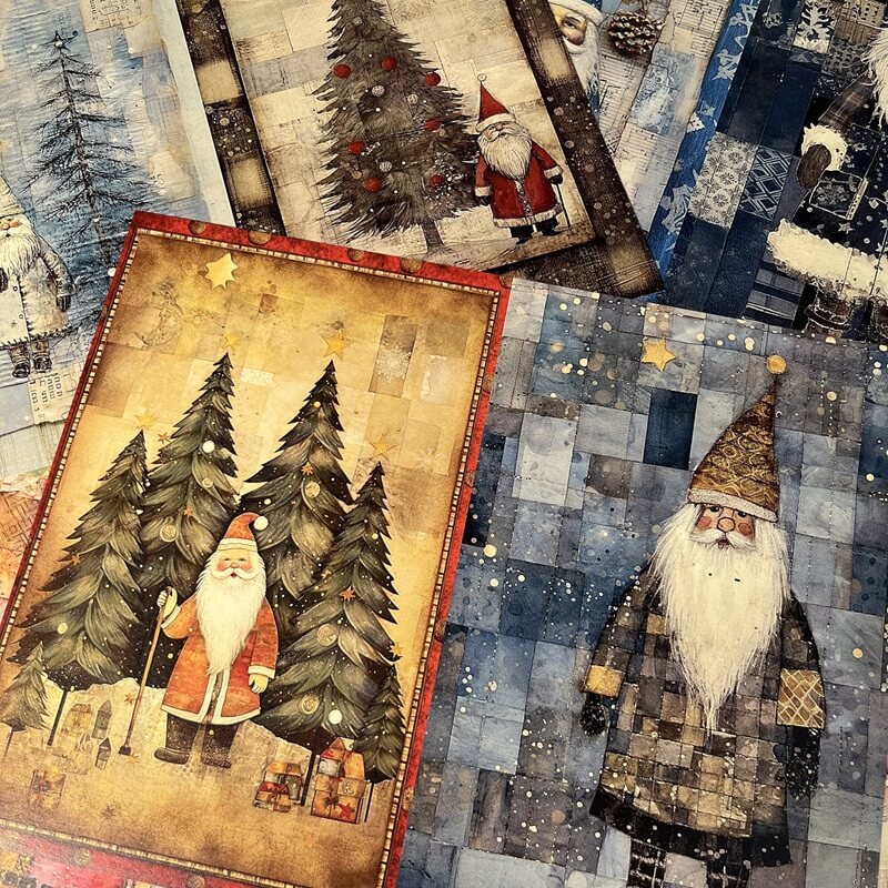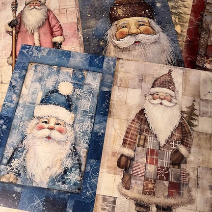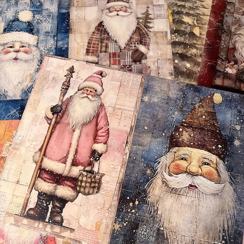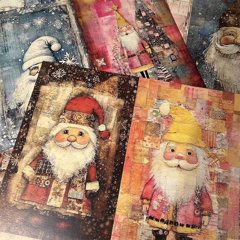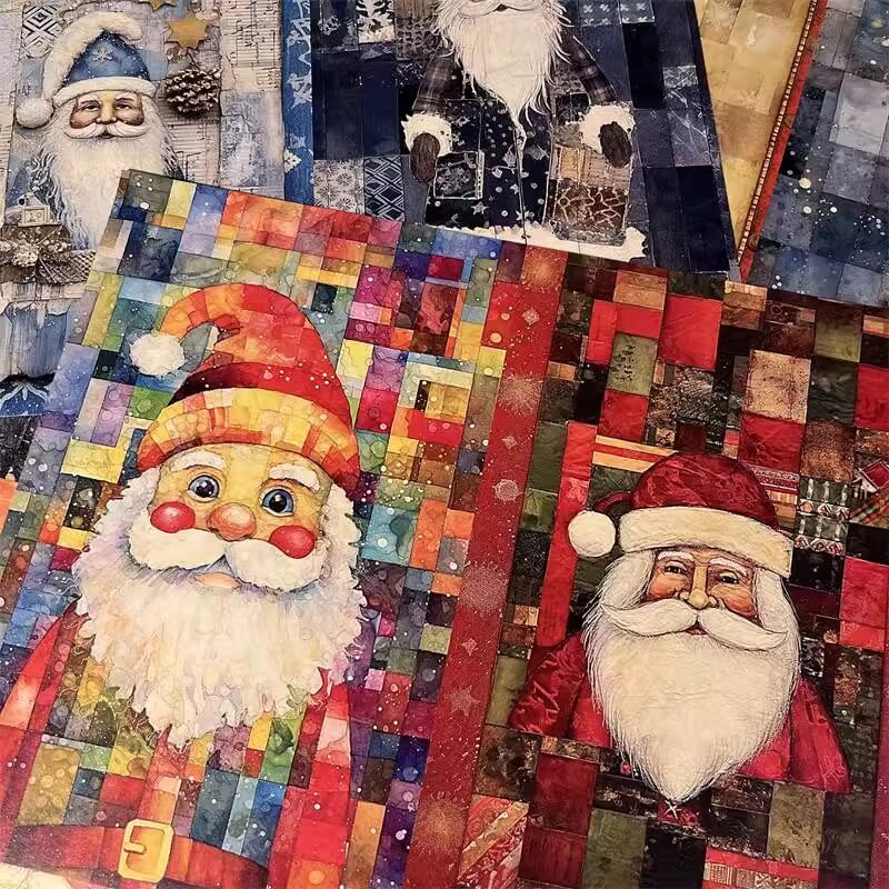Colorful Santa Claus material paper is full of holiday joy, paper printed with bright Santa Claus pattern colorful and exquisite details, perfect for Christmas cards, handbook, gift wrap and other craft projects, adding warm and joyful atmosphere for the holiday season.