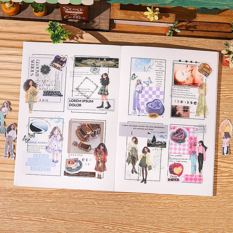 Cute Girl Mini Sticker Book is used to decorate scrapbooks, art journals, cards, agenda books and other paper crafts, can also be used to decorate computers, cell phones, they can add a unique style and personality to the items, is the items more attractive and personalized, colorful for life!