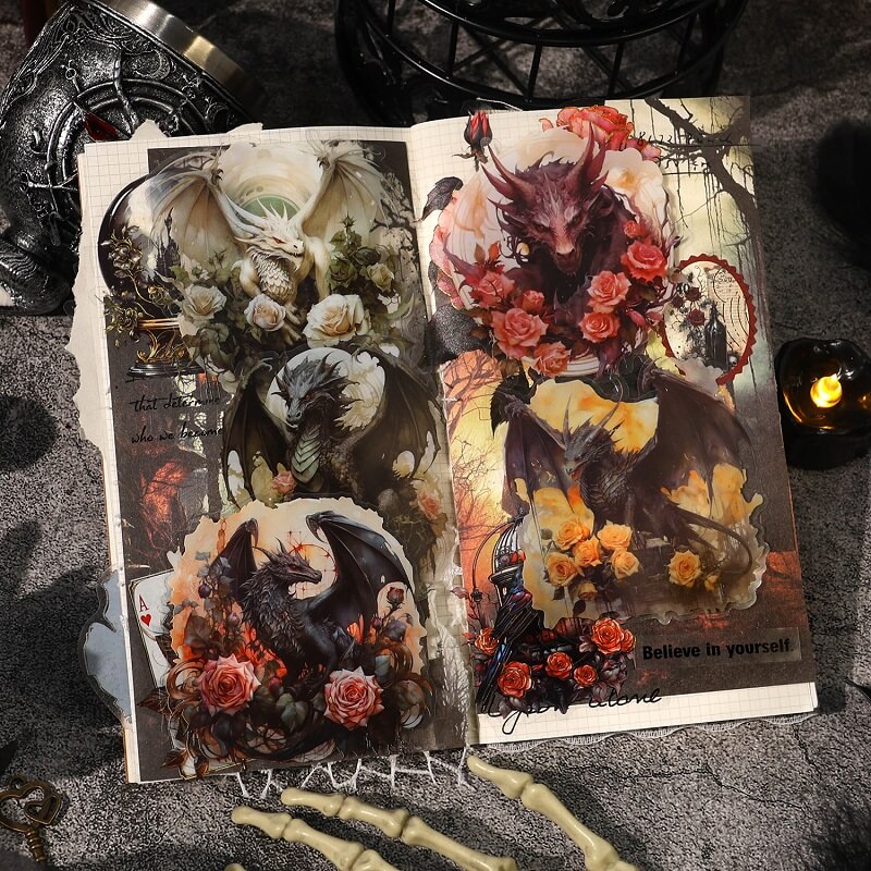 Gothic Dragon Stickers are used to decorate scrapbooks, art journals, cards, planners and other paper crafts, they can also be used to decorate computers, mobile phones, they can add a unique style and personality to the item, it is the item is more attractive and personal, add colour to life!