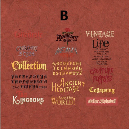 Gothic Letter Stickers can be used to decorate scrapbooks, art journals, cards, gift bags and DIY other paper crafts. Make unique handmade items to add a mysterious charm to your creations, unleash your imagination to make this material paper part of your unique story.