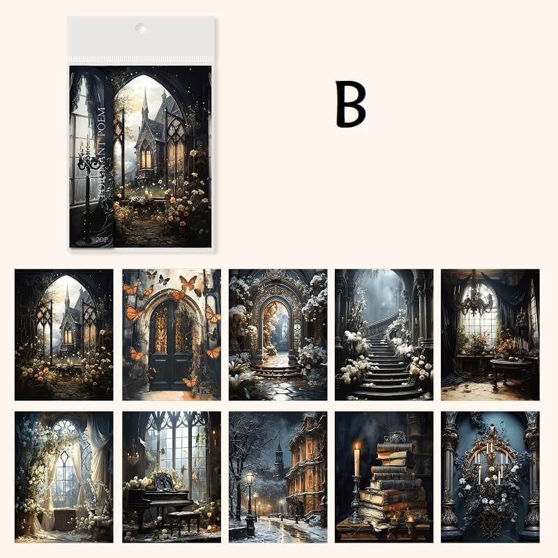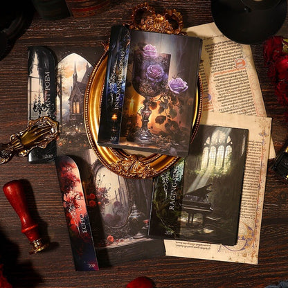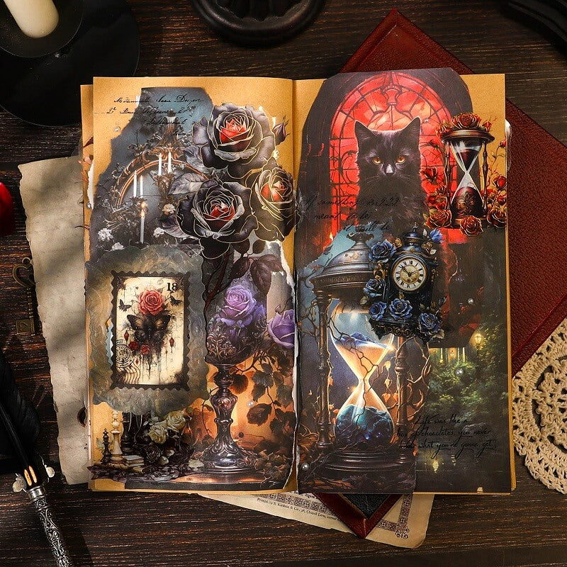Gothic Rhapsody Material Paper is for writing, note taking, free cutting and also for decorating scrapbooks, art journals, cards, gift bags and DIY other paper crafts. Make unique handmade items to add a mysterious glamour to your creations, unleash your imagination to make this material paper part of your unique story.