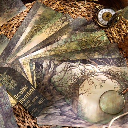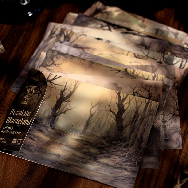 Wasteland Series Paper is for writing, note taking, free cutting, and also for decorating scrapbooks, art journals, cards, gift bags and DIY other paper crafts. Make unique handmade items to add a mysterious glamour to your creations and unleash your imagination to make this material paper part of your unique story.