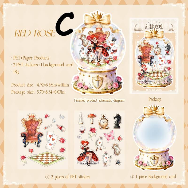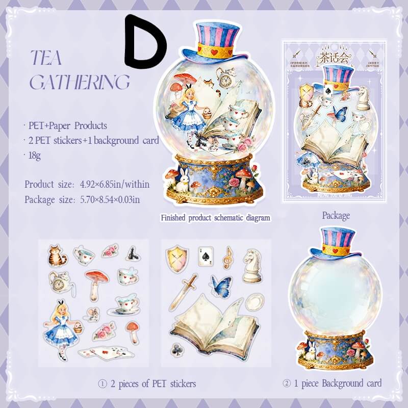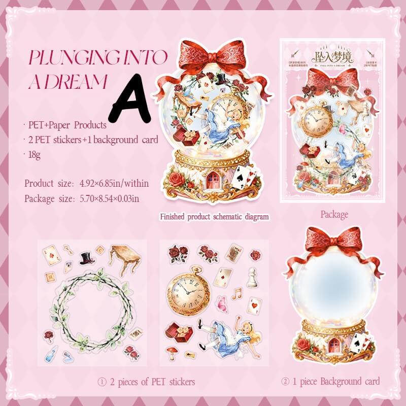 Dreaming Wonderland Stickers, inspired by Alice's fantastical dream world and fairy tale elements, feature soft, delicate colors and layered imagery. Perfect for scrapbooking, DIY collages, card decorating, and other creative projects, these stickers effortlessly craft dreamlike journal pages—ideal for scrapbook enthusiasts and collage artists.