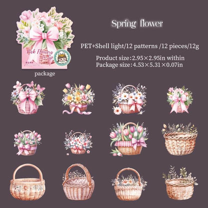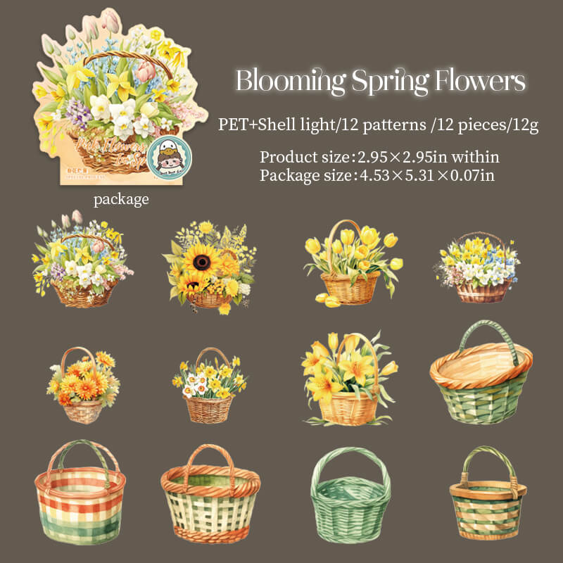 Spring flower picking stickers are based on the theme of spring flowers, with fresh and bright colors and lively design. Suitable for handbook collage, greeting card decorations and daily records, adding a spring flavor to the creation!