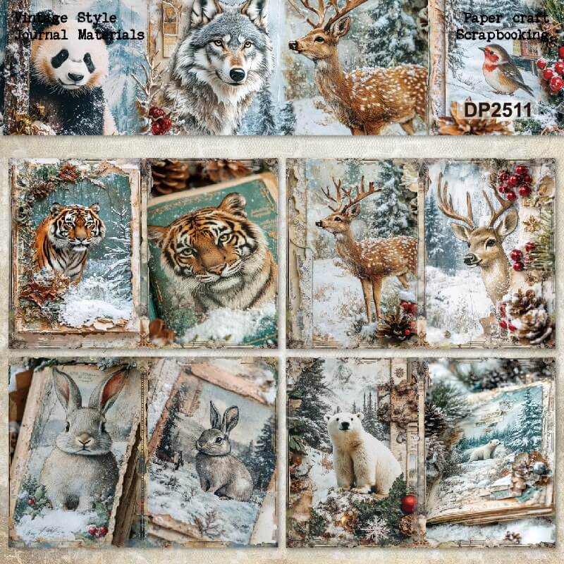 Animal world material paper has 8 different patterns, it is the most basic accessory for scrapbook album scrapbooking, it can also be used for handmade greeting cards, handbook decorations, DIY origami, packaging, and so on.