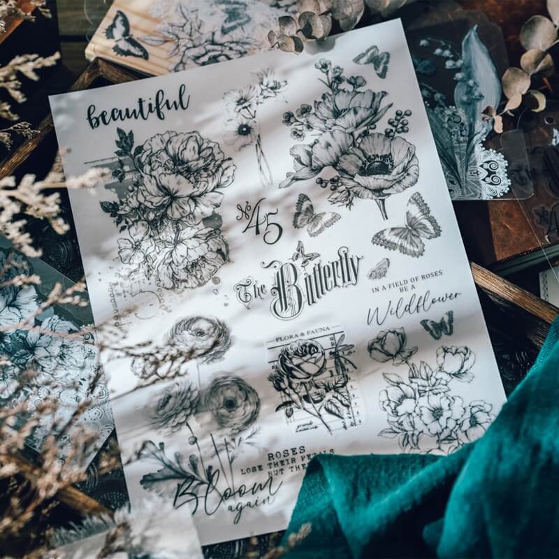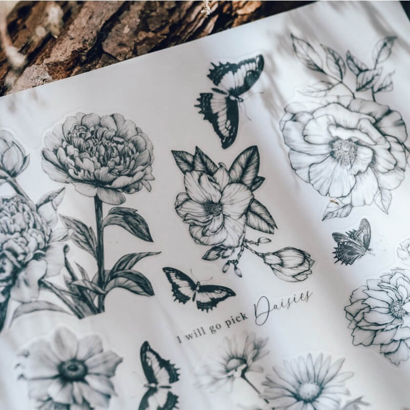 Black and white flower rub-on stickers are presented in simple black and white tones with beautiful artistic patterns, suitable for handbook collage, card making, decorative journaling and other craft projects. Simple and intuitive to use: just press, rub and peel to apply the gorgeous, long-lasting stickers to any smooth surface, adding unique style and texture to your work.