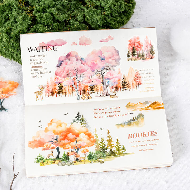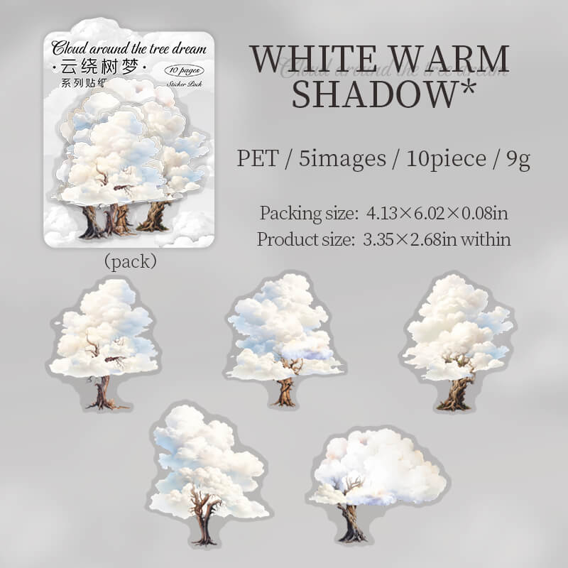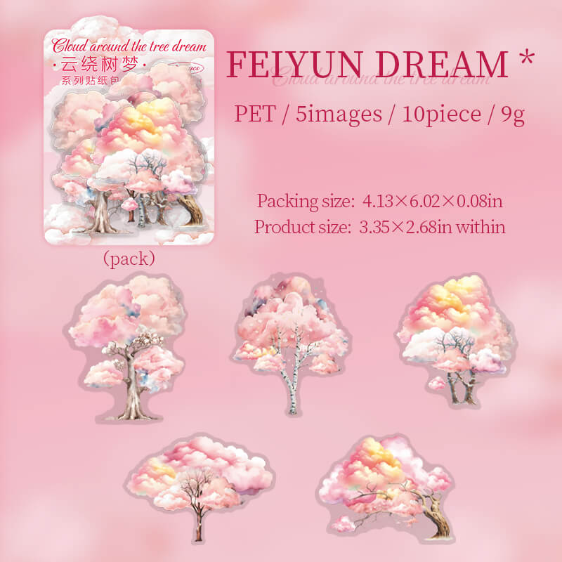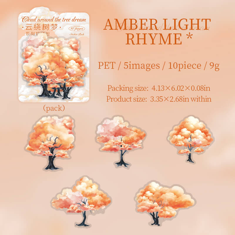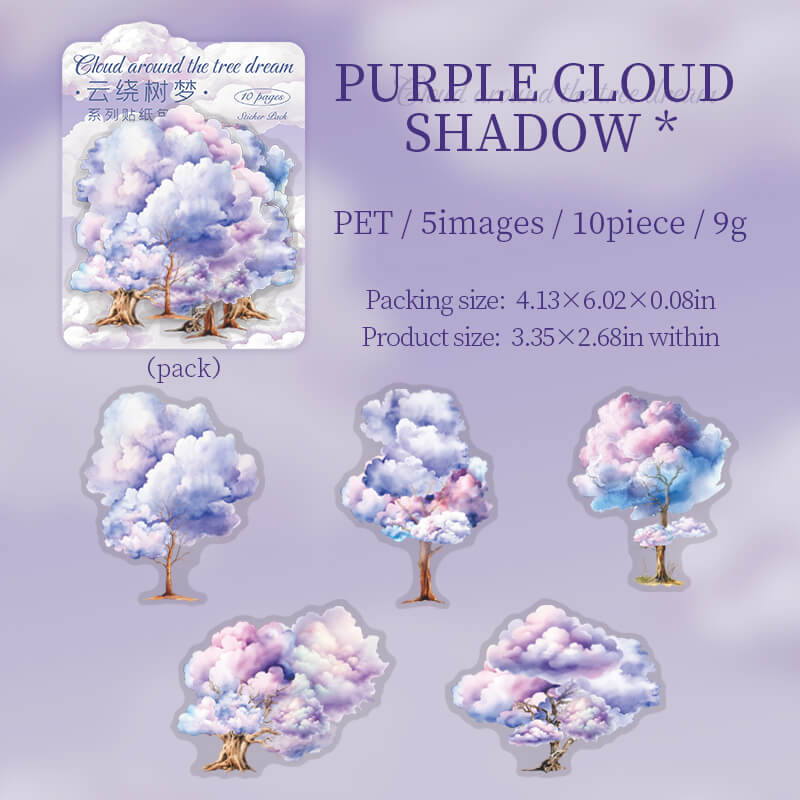 Cloud Trees stickers show the natural landscape of clouds and trees intertwined. The sticker pattern is exquisite and delicate, the clouds are light and airy, and the trees are upright and elegant, as if taking people into a peaceful forest in the sky. Suitable for handbook, diary, greeting cards and other literary creations, adding a fresh, dreamy atmosphere.