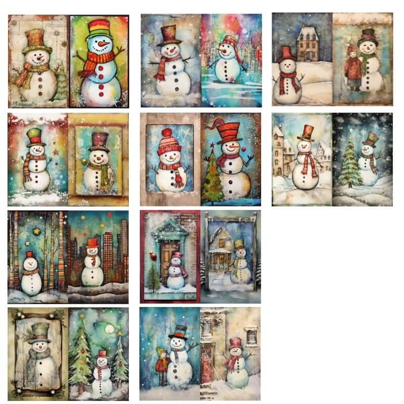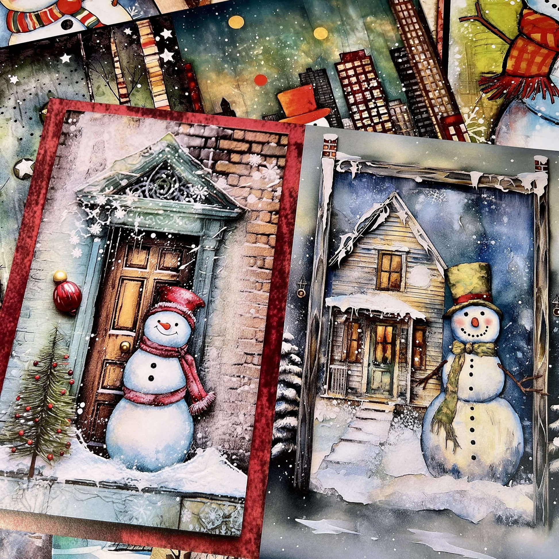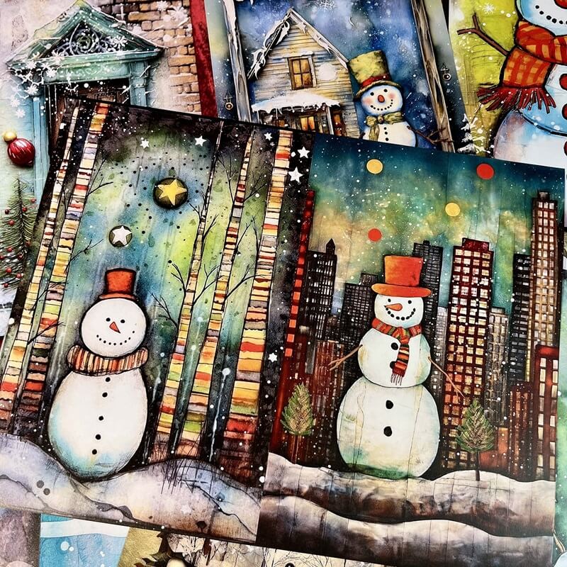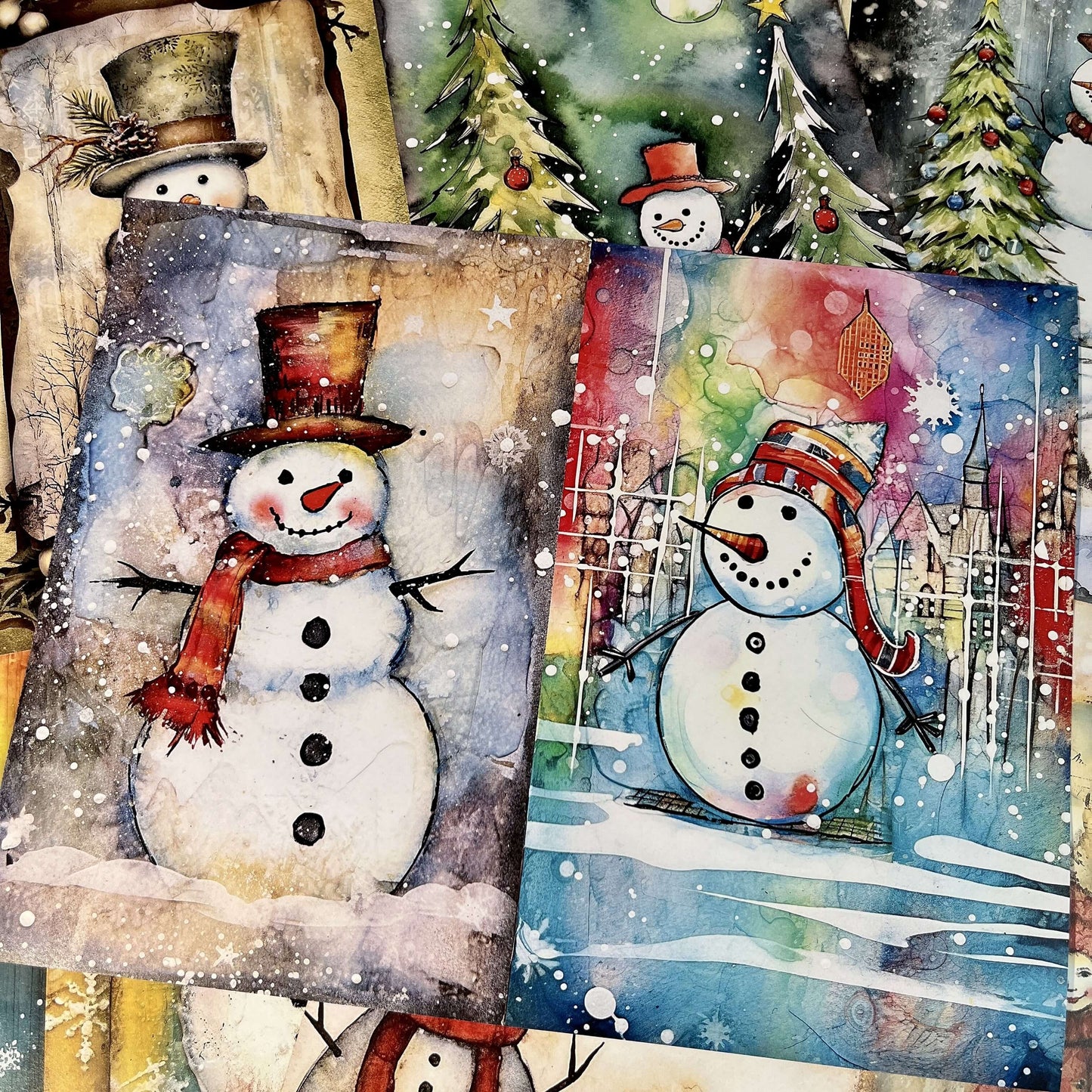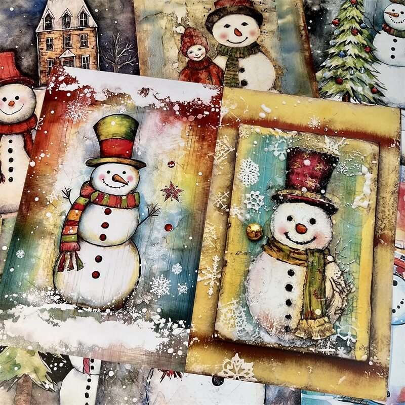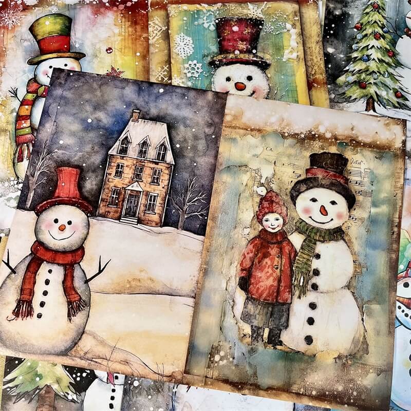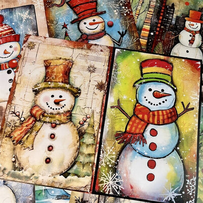 Cute snowman material paper with a snowman theme. Ideal for winter-themed cards, handbook collages or greeting cards to convey the warmth and blessings of the holiday season.