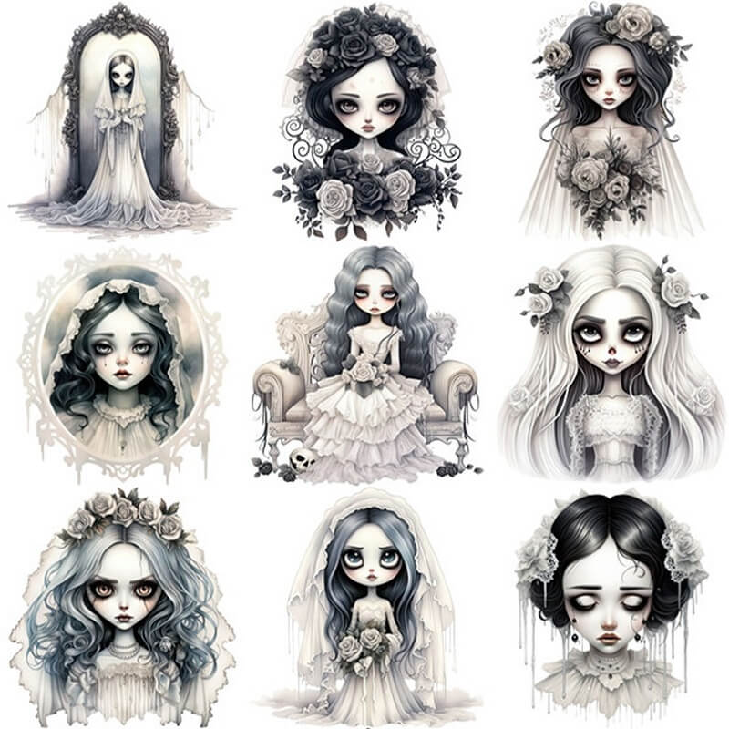 Devil's Bride Stickers are used to decorate scrapbooks, art journals, cards, gift bags and DIY other paper crafts. Make unique crafts and add a mysterious charm to your creations, release your imagination to make this material paper part of your unique story.