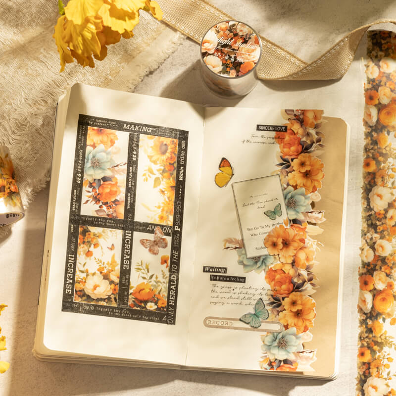 Dusk floral tape can be freely cut and stacked with other stickers and material paper to make the layers more rich. Not only for handbook collage, but also can be used for album making, gift wrapping and other DIY decorations, add some unique decorations to the work, make it more beautiful!