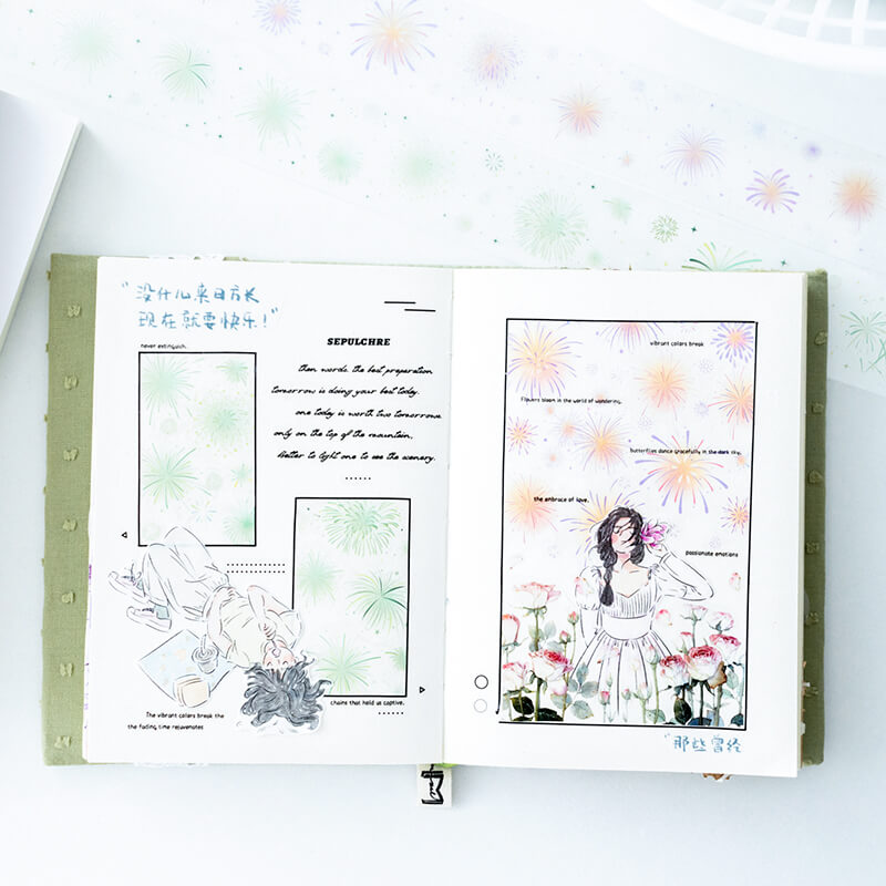 Fireworks Tape can be freely cut and stacked with other stickers and material papers to make the layers more rich. Not only used for handbook collage, but also can be used for album making, gift wrapping and other DIY decorations, add some unique decorations to the work, make it more beautiful!