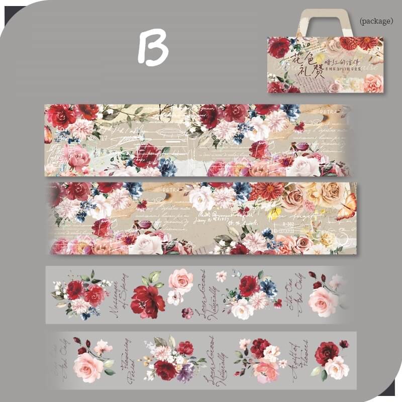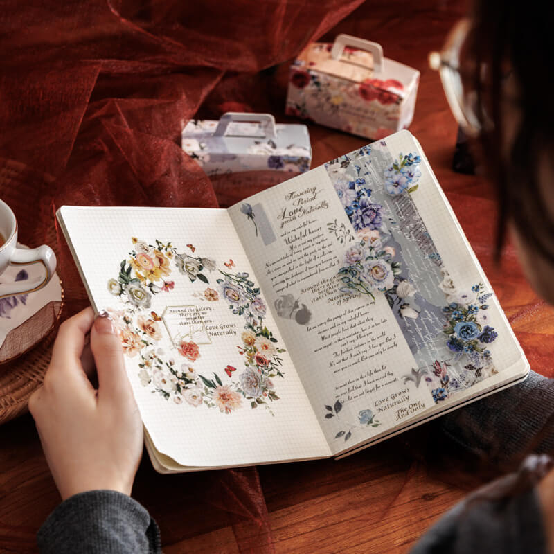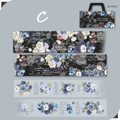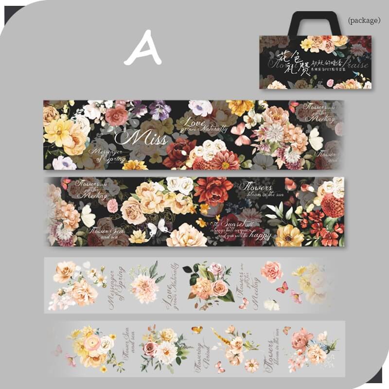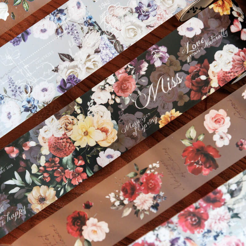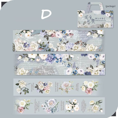 Floral Salute Tape Set, a selection of beautiful floral patterns in soft colors, suitable for handbook, card decorating and handmade creations. Easy to match, add romantic and artistic flavor, make every page full of poetry and inspiration!