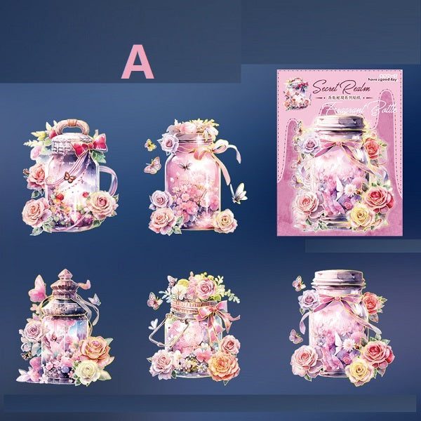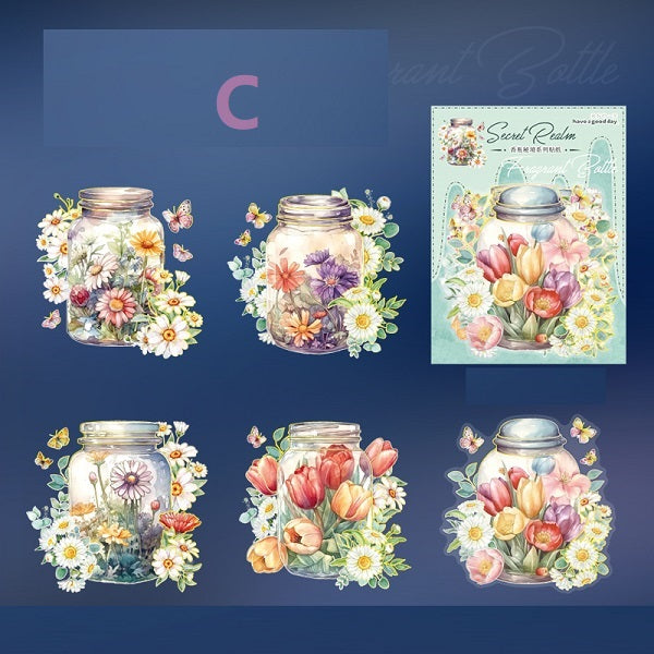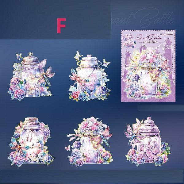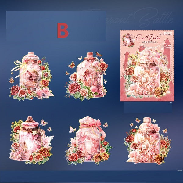 This scented bottle series themed stickers, colorful, large size, random collage, can be used for photo albums, phone cases, scrapbooking, junk journaling, and can also be attached to luggage and other locations to add some fun to your life!