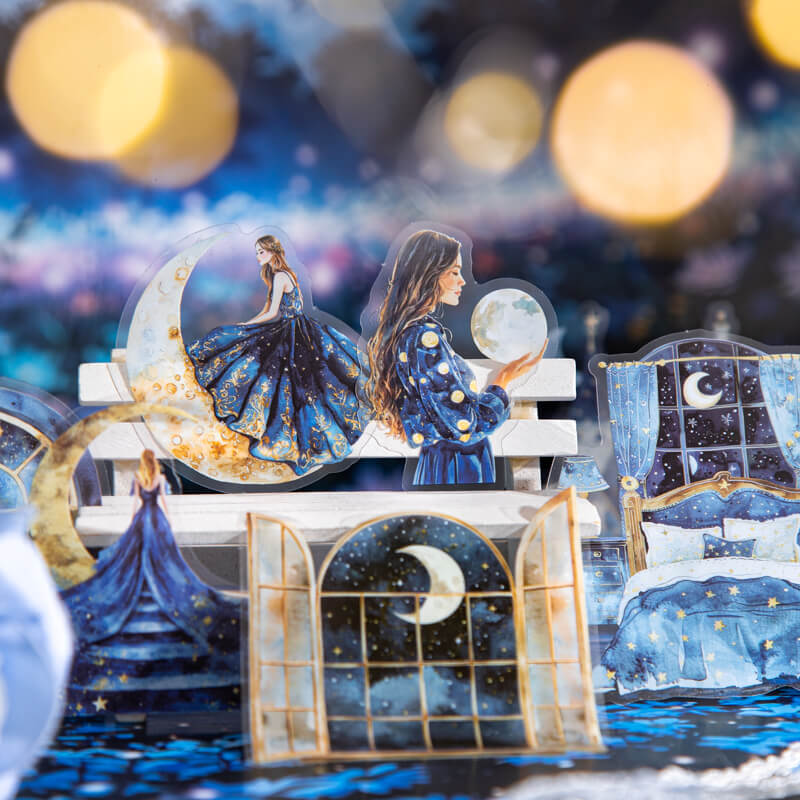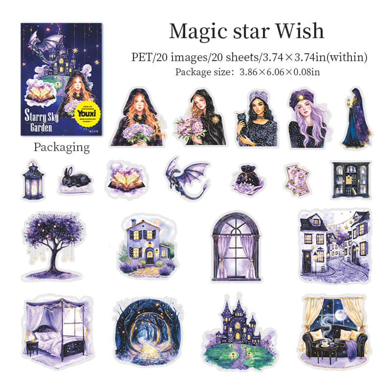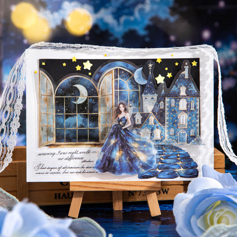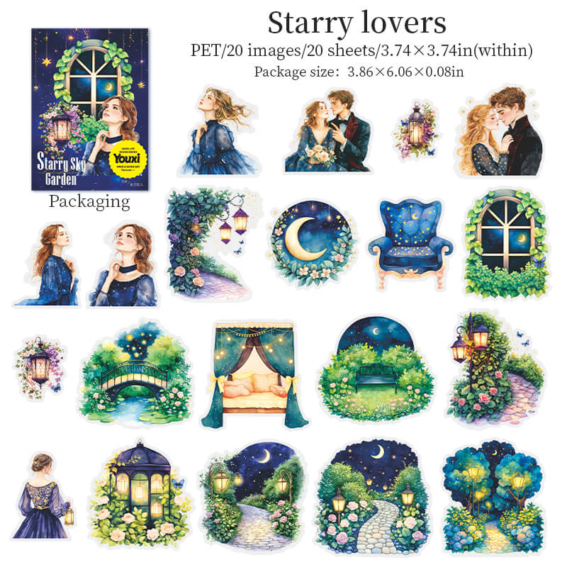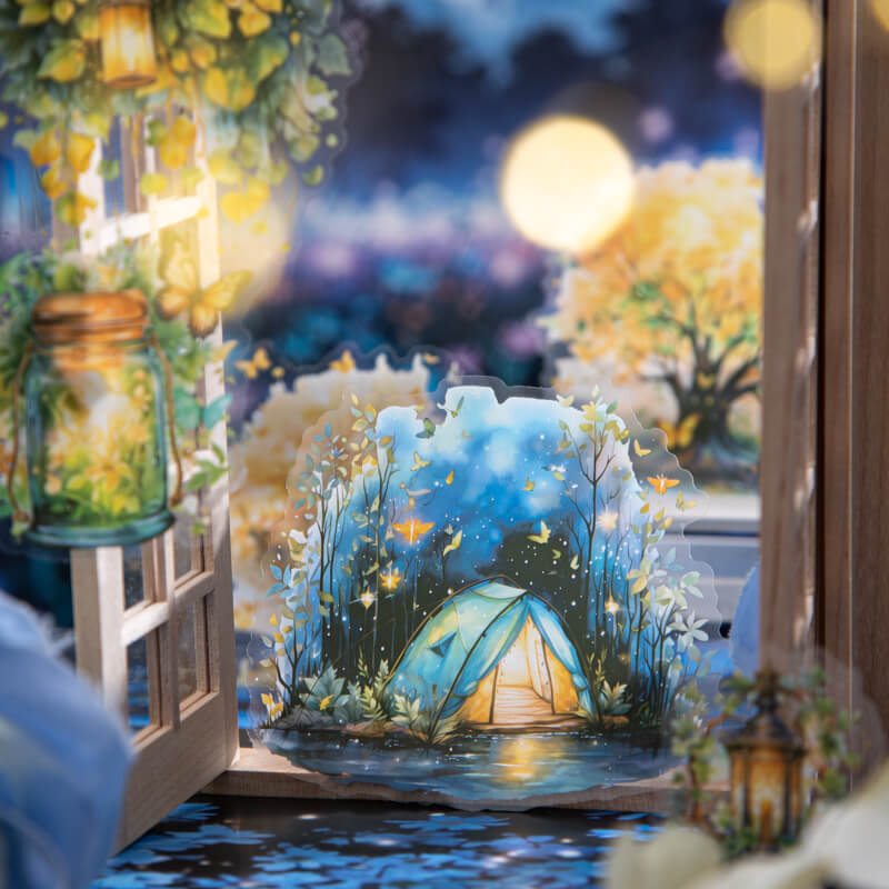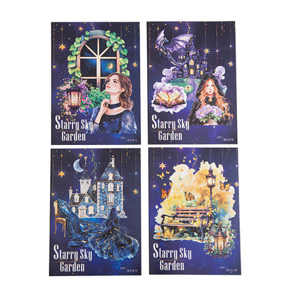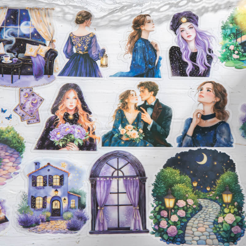 Garden Under the Stars Stickers,Step into a moonlit dream with our Night Garden stickers. Each transparent sticker features glowing flowers, stars, and celestial details under the night sky. Perfect for journaling, scrapbooking, pen pal letters, and cosmic-themed collages. A must-have for starry night and garden lovers alike.