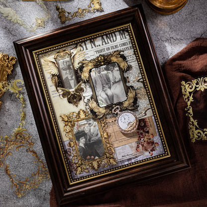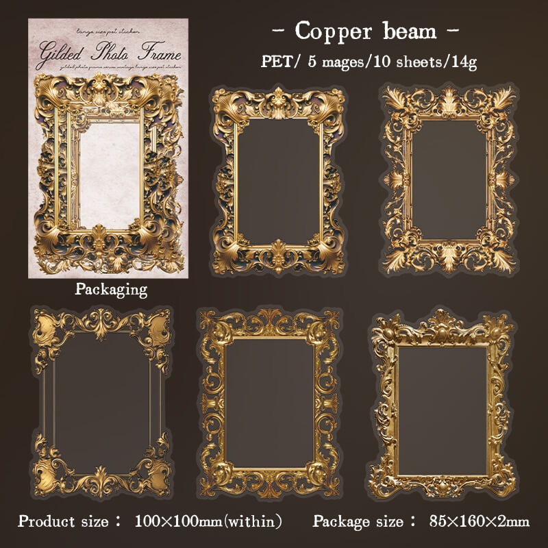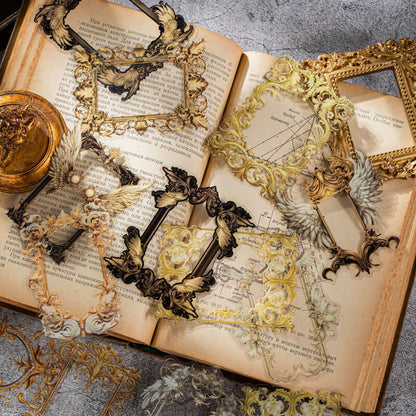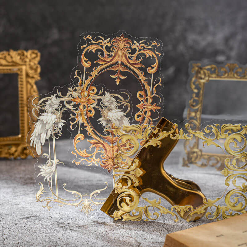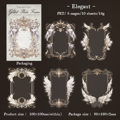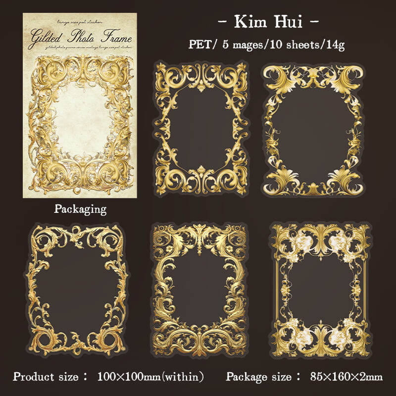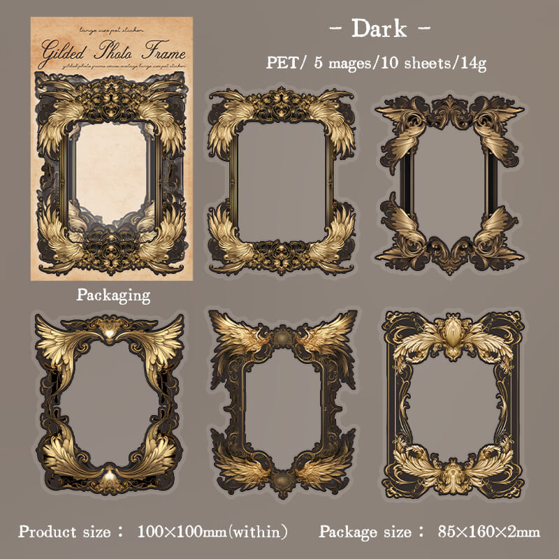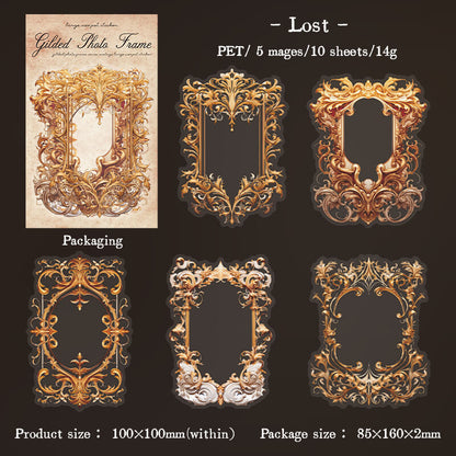 Gilt photo frame stickers are available in 6 different themes in gorgeous styles, stacked with other material papers, stickers for decorating scrapbooks, art journals, cards, planners and other paper crafts for a more layered look!