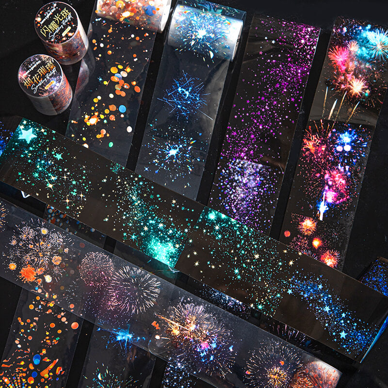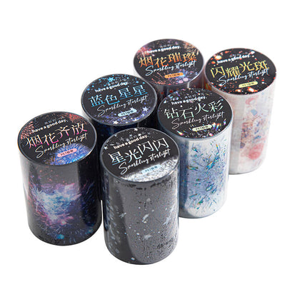 Glitter starlight tape can be freely cut and stacked with other stickers and material paper to make the layers more rich. Not only for handbook collage, can also be used for album making, gift wrapping and other DIY decorations, add some unique decorations to the work, make it more beautiful!