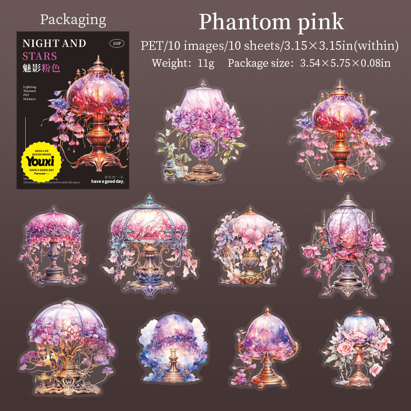 Gorgeous lamp sticker feature a variety of lamps with delicate designs and brilliant colors. The combination of twinkling lights and gorgeous decorations presents a luxurious and cozy atmosphere. Whether it's a handbook, card or any creative project, it will add a touch of gorgeous light to your work and light up every detail.