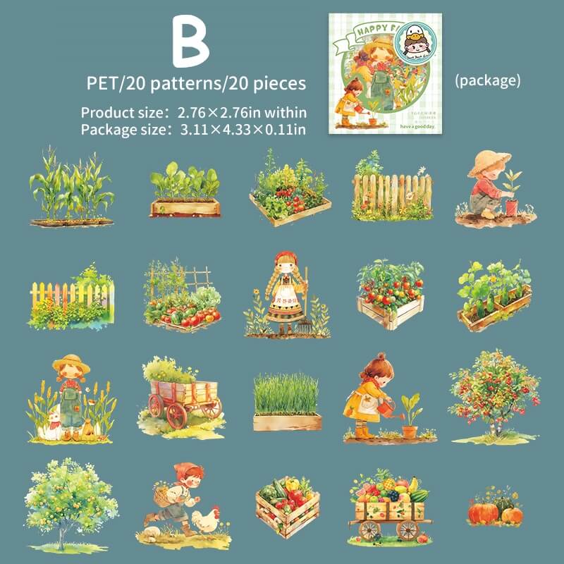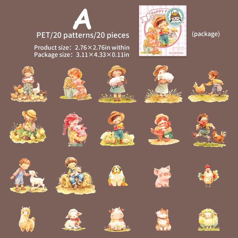 Happy Farm Sticker features adorable children, animals, fresh veggies and a cosy country vibe, perfect for scrapbooking, journaling and planner decorating. These farm-themed stickers add charm to DIY crafts and creative projects. Ideal for children, crafters and stationery lovers!