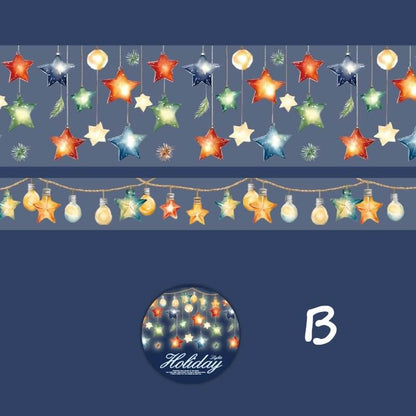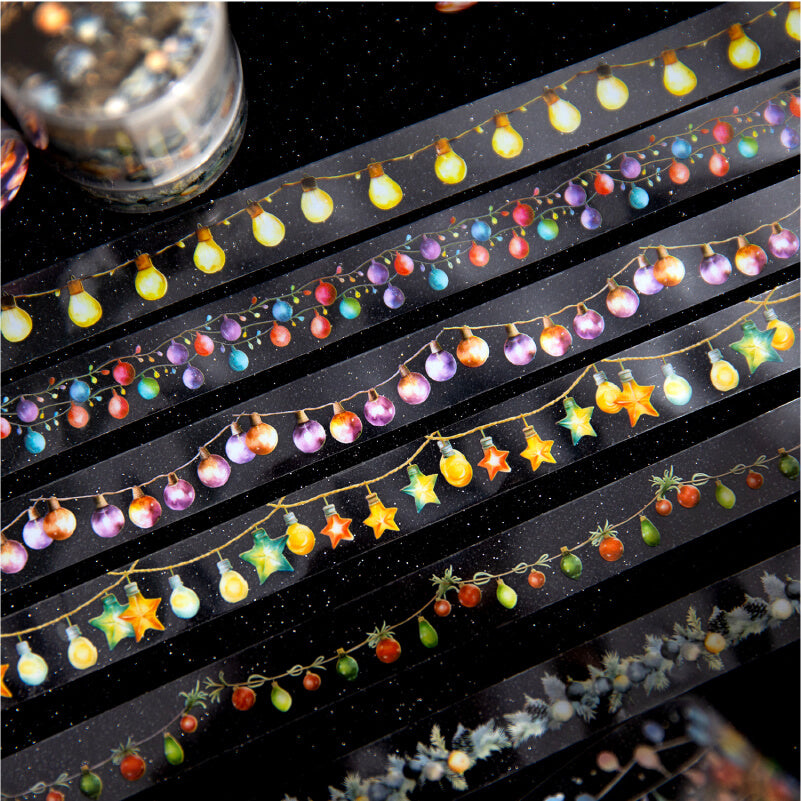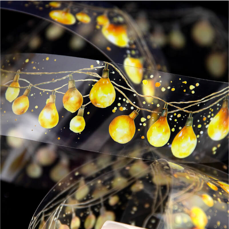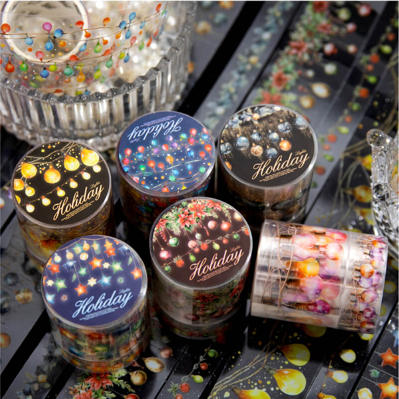 “Holiday Lights Tape” is inspired by colorful lights for a sparkling holiday atmosphere. Each roll of tape is designed with a variety of light patterns, perfect for decorating handwritten notes, greeting cards, and holiday gifts to add a festive touch. Whether it's a party or an everyday creation, this tape will give your work a bright holiday glow.