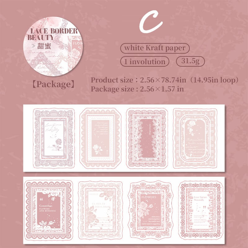 Lace border tape is beautifully patterned, suitable for handbook, card and handmade decorations, can be torn and used directly, with moderate adhesion and firm fit. A variety of styles to choose from, adding a unique sense of hierarchy and artistic flavor to your creations!