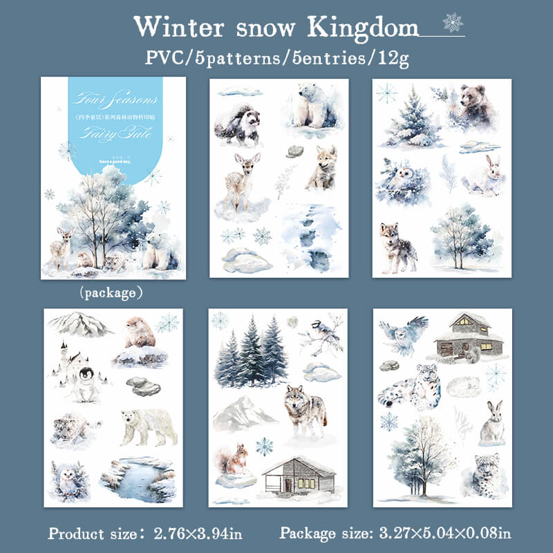 Mini four seasons forest rub-on stickers incorporate the forest scenery and fairy tale elements of the four seasons. In spring, summer, fall and winter, all kinds of cute little animals, fantasy plants and dreamy scenes are intertwined with each other, full of magic. Whether it is used to decorate handbook or cards, it can bring a cozy fairy tale atmosphere.