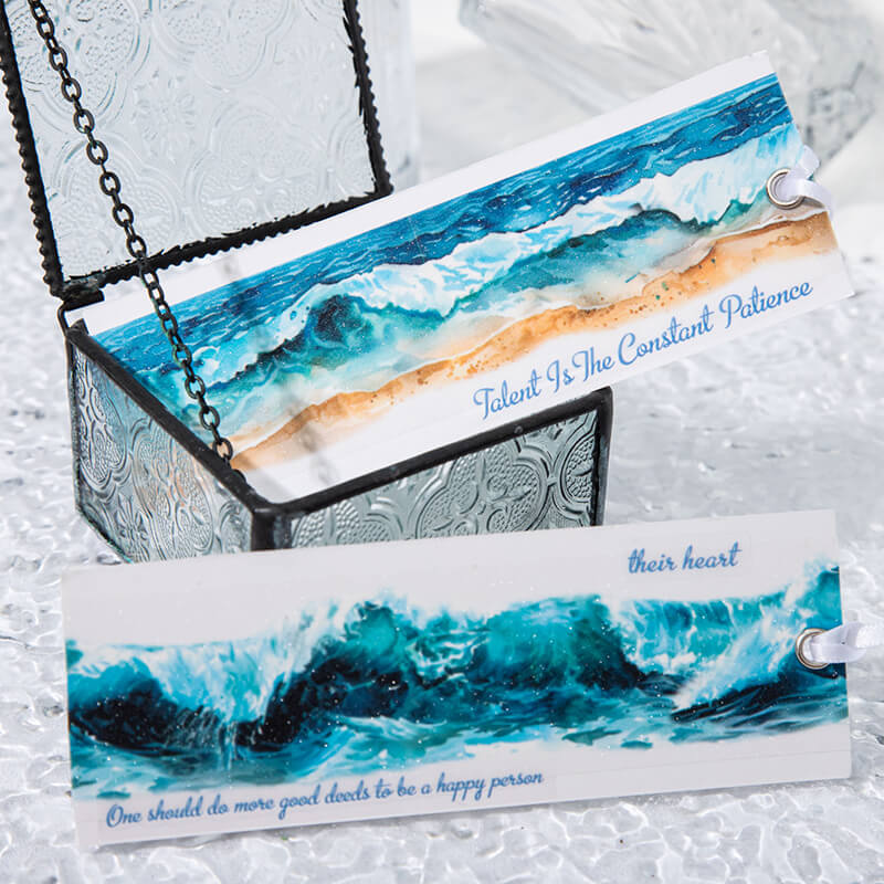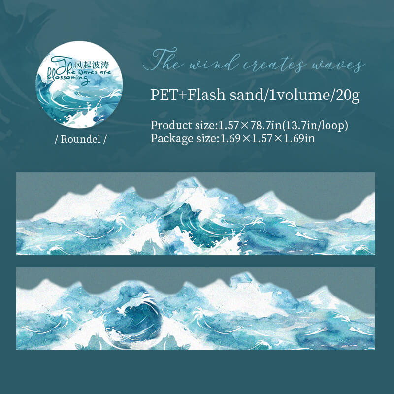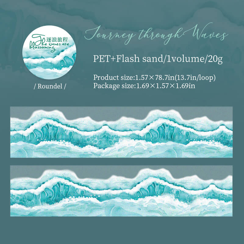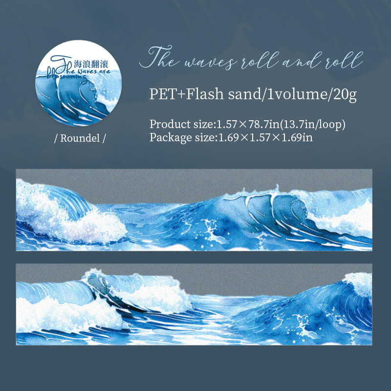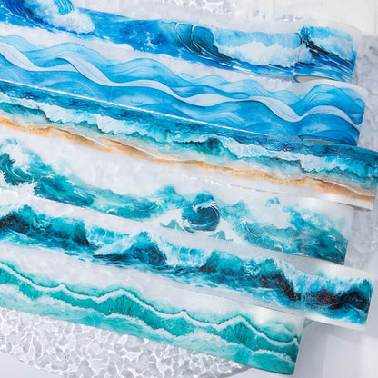 Ocean Wave Tape, in blue, depicts a dynamic ocean wave pattern. Each strip of tape seems to carry the scent of the ocean, and can be used to decorate handwritten notes and greeting cards, as well as to add a lively touch to creative projects. Let your work be as vibrant and dynamic as the waves of the sea.