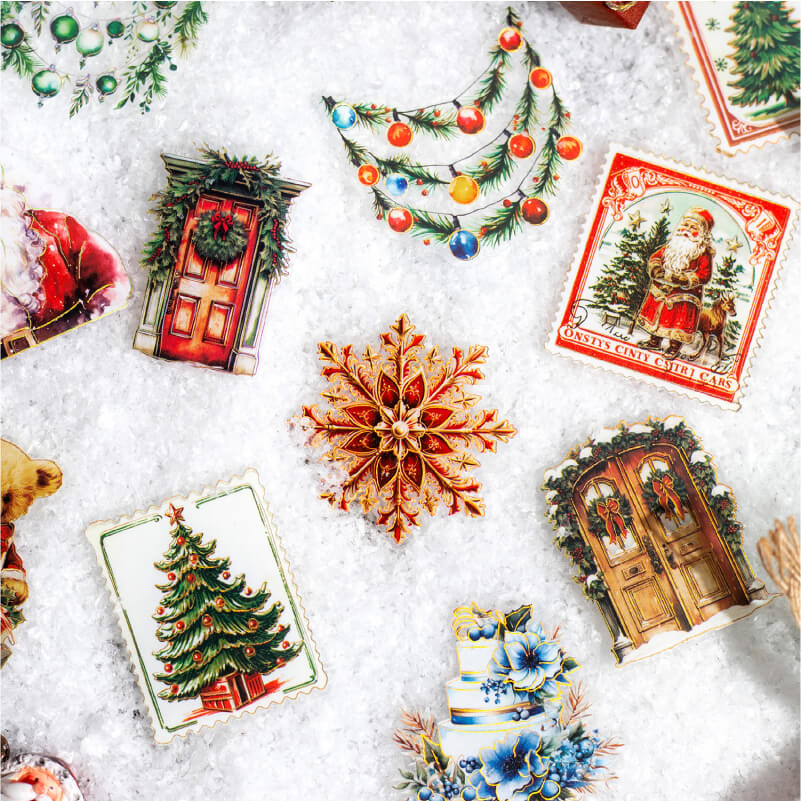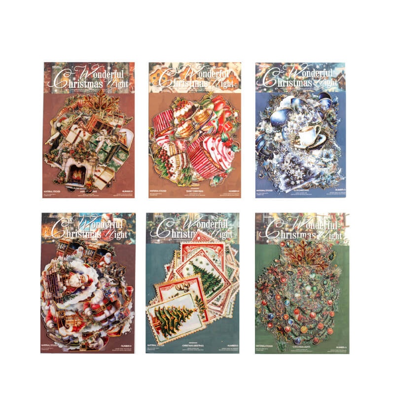 Small size Christmas Wonderful Night stickers are full of festive atmosphere, with patterns including Christmas trees, snowflakes, elk, gift boxes and other classic elements. Each sticker is delicate and small, suitable for decorating handbooks, greeting cards or gift wrapping to add a festive atmosphere. These stickers are colorful, sticky and not easy to come off, perfect for craft lovers!